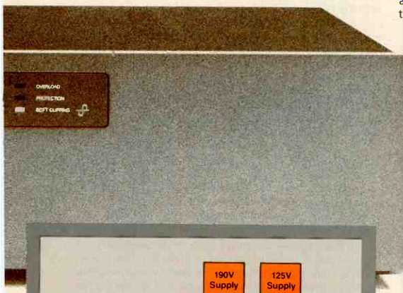 The 2200 virtually re-defines the concept of dynamic head room. Its high power reserves are available, not only for the short 20-millisecond bursts used in the standard IHF dynamic headroom test, but also for musical surges and climaxes lasting ten times longer. Even with compressed recordings of rock music in which the peaks may be only 8 dB higher than the average power, that may be enough variation to allow the 2200 to operate at high efficiency and maintain a clipping level above 500 watts per channel into the 4-ohm impedance that is typical of real speakers. SPECIAL FEATURES: The appeal of the NAD 2200 may be based mainly on its combination of high dynamic power and low cost, but there are other noteworthy aspects of its design, too. Transparent sound. The audio circuitry of the 2200 is based on the same principles that gained worldwide praise for other NAD amplifiers. In the 2200 the circuitry is scaled up substantially in speed and power, using the finest selected parts available today-individually tested filter capacitors and ultra high-speed transistors for wide bandwidth and extremely low distortion. The output stage is a fully complementary parallel circuit using high-gain 25MHz transistors with over 10 times the "safe operating area" of transistors used in typical 100 watts/channel designs. High-voltage, high-current design. Current flowing through the voice-coil is what causes a speaker to produce sound, and NAD was the first manufacturer to emphasize the importance of high output current capacity-unrestricted by so-called protection circuits-to cope with the complex, reactive impedance that many speakers present. The NAD 2200 can produce peak output currents exceeding ±50 Amperes on demand, together with peak output voltages of ±95 volts to handle the most dynamic signals. --Continuous sine-wave output conservatively rated at 100 watts per channel. --Produces 400 to 800 watts per channel of dynamic power for music (depending on Impedance). Generates peak sound pressure levels above 115 dB with most speakers. --Bridging circuit yields 400 watts continuous sine-wave output, over 1200 watts dynamic power for music. --High-current output stage delivers peak currents up to 50 Amperes for precise control of voice-coil motion. --Similar in size, weight, and cost to conventional 100-watt amplifiers. --------The dashed line in this simplified PowerTracker diagram shows the flow of current from the power supplies to the loudspeaker. At normal signal levels the 125-volt supply provides all current. When the audio signal rises above the 140-watt level a controller turns the "gate" transistor on, lowering its resistance nearly to zero so that maximum current can flow from the 190V supply. If the demand for current remains high, a second controller gradually shuts off the flow from the 190V supply to prevent overheating. Inverted channels for powerful bass. The greatest power demands commonly occur at low frequencies. Bass signals are in-phase (and virtually monophonic) in most recordings; thus when the bass waveform is strongly positive in the left channel, it usually is strongly positive in the right channel at the same time. As a result both channels draw current simultaneously from the positive half of the power supply, while the negative half sits idle. During the negative half of the waveform, both channels draw from the negative supply while the positive supply sits idle. In the NAD 2200 the right channel is internally inverted in polarity. When a bass waveform causes the left channel to draw current from the positive supply, the right channel draws its bass power from the negative supply, and vice-versa. This efficient usage halves the instantaneous drain on either supply, allowing much stronger bass to be reproduced without draining the supply. Bridging. The NAD 2200 is so powerful in the normal stereo mode that few listeners will ever need more. For special situations the two channels of the 2200 can be bridged to form a mono amp of truly immense power. Its rated continuous sine-wave output is 400 watts, while its dynamic power output exceeds 1200 watts into 8 ohms and 1600 watts into 4 ohms. Two 2200s in bridged mode (delivering over 3 kilowatts into a pair of 4-ohm speakers) would cost about the same as an ordinary 400-watt amplifier. Quiet circuitry. The delicacy and purity of low-level musical information is as important for realism as the power to handle climaxes. The signal-to-noise ratio of the 2200 (relative to its rated 100 W/ch output level) is greater than 111 dB. No fan noise. In most power amps that are capable of the same 500 W/ch output on musical signals as the 2200, a noisy fan must be used to dissipate excess heat from the circuitry. The efficient 2200 is totally, blissfully silent in operation. Close-tracking Soft Clipping: The newly improved Soft Clipping-circuit in the 2200 accurately tracks the available peak power, regardless of speaker impedance. Older Soft Clipping circuits tended to reduce the available dynamic power by 1.5 to 2 dB in order to ensure that continuous output would always be free from harsh distortion (even when the amplifier was over driven). With the new PowerTracker-circuit, this limitation no longer applies. Now the amplifier's sound remains subjectively clean and transparent right up to the maximum output level. It continues to sound good even at levels 2 to 3 dB above the amplifier's rated maximum output, since the Soft Clipping circuit gently rounds off the waveform corners and prevents any distortion due to power-supply modulation as well as reducing high order harmonics which may damage tweeters. "Audible Clipping" Indicator. To enable the user to make the fullest use of the dynamic power of the 2200, a front-panel "Overload" LED indicator illuminates whenever the amplifier is driven into clipping (or exhibits any other distortion) for a long enough time to be audible. Its calibration is based on psycho acoustic studies showing