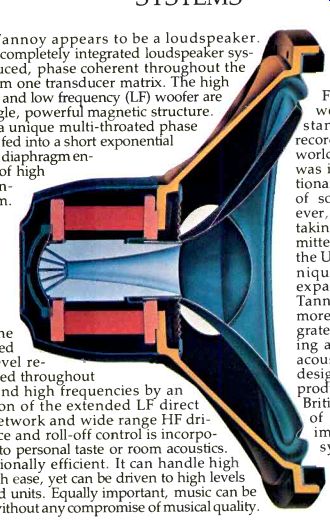 There Are Bigger, Chromier, Knobbier, More Expensive Cassette Machines Than The Advent 201A. But... If you are going to buy a high-performance cassette deck, you ought to know that no cassette machine will make more satisfying recordings (and keep on making them for year after year) than the Advent 201A. The Advent 201A is a new version of the machine that made cassettes the high-fidelity medium they are today. It is a uniquely simple, precise, and durable piece of recording machinery that will make cassette tapes that sound essentially identical to the best material you will find to put on them with an ease (and repeatability) that is approached by very few cassette decks at any price and surpassed by none. The 201A is designed to be used, not worshipped. Its unique single VU meter (which continuously scans both stereo channels and reads out the louder at any given moment) and its precise recording controls make it the same kind of day-after-day joy to operate as a fine camera. If you will send us the coupon, we will be happy to send full information on the Advent 201A (including a description of the new features, such as the Sendust tape head, that distinguish it from the original 201) . In the meantime, we suggest that before you buy any tape machine, cassette or open reel, you give the 201A the performance test it deserves. And check with anyone who owns an Advent on the kind of satisfaction it gives year after year. Thank you. ============ Tannoy ![]() INTEGRATED SPEAKER SYSTEMS At first glance, the Tannoy appears to be a loudspeaker. It is more. It is in fact a completely integrated loudspeaker system. Sound is reproduced, phase coherent throughout the entire audio range, from one transducer matrix. The high frequency (HF) tweeter and low frequency (LF) woofer are combined within a single, powerful magnetic structure. Sound is collected by a unique multi-throated phase compensating unit and fed into a short exponential horn. The curvilinear LF diaphragm ensures wide dispersion of high frequencies and an unbroken audio spectrum. The LF diaphragm acts as a true piston from the lowest bass up to 1kHz. The tweeter handles frequencies from 1kHz to beyond 20kHz. The crossover network ensures smooth transition between the woofer and horn-loaded tweeter. A superb, level response curve is achieved throughout the low, mid-range and high frequencies by an ingenious combination of the extended LF direct radiator, crossover network and wide range HF driver. A dynamic balance and roll-off control is incorporated for adjustments to personal taste or room acoustics. The Tannoy is exceptionally efficient. It can handle high powered amplifiers with ease, yet can be driven to high levels by moderately powered units. Equally important, music can be played at low volume without any compromise of musical quality. A Rolled surround for stability in low bass response B Unique ribbing virtually eliminates cone break-up ensuring smooth response and extraordinary high power capacity C High temperature voice coil D Dustproof, acoustically transparent sealing dome E Concentric HF horn (completed by curved LF cone) F Phase-compensating multiple throat for extended and smooth HF response G Acoustic balance cavity for reduced distortion H Aluminum voice coil conductor for high power capacity and superb HF response I Exclusive magnetic shunt for increased LF flux Tannoy has been engaged in continuous research and production of high quality transducers for half a century. From the outset, its products were adopted as a listening standard by broadcasting and recording companies all over the world. By 1968, the term, "Tannoy" was in the Chambers English Dictionary as synonymous with the art of sound reproduction. However, modest facilities and painstaking standards of production permitted only limited distribution in the United States. Now... new techniques and materials, as well as expanded facilities have made Tannoy systems available to many more listeners. The Tannoy integrated speaker system is the crowning achievement of generations of acoustic consultants, researchers, designers, sound engineers, and produced in the best traditions of British craftsmanship. The hand of the master cabinetmaker is immediately apparent in the system's exquisitely finished enclosure . The Tannoy will provide the maximum quality your electronic equipment is capable of delivering. 122 Dupont Street, Plainview, N.Y. 11803 ============ Celestion Loudspeakers ![]() ::.a pair of 66's may sound unspectacular, even disappointing.:: This is not the sort of quote that manufacturers usually select from equipment reviews. However, we did it for one reason: to get your attention. That's not an easy task, considering the hundreds of other speaker manufacturers clamoring for your ear and your dollar. The complete excerpt (from Canadian Stereo Guide) reads: "To the untrained ear, a pair of 66's may sound unspectacular, even disappointing. There's no thump and sizzle which many equate with good frequency response. No spectacular effects, just the neutral sound of musical instruments playing with nothing added by the speakers. Purity of tone and cleanness of reproduction is particularly noticeable." The Ditton 66 was in fact developed by Celestion to serve as an authentic monitor speaker, which means that it was designed to neither add nor subtract anything from the original program material. Recording engineers aren't interested in "hi-fi effects"-they want to hear exactly what's on the master disc or tape with minimum sonic contribution by the speaker. When the British publication, Hi-Fi Answers needed a concert monitor they found the Ditton 66's "...sufficient to cope with the loudest orchestral climaxes available (or even required)... when we wanted to provide concert levels in a large hall, 110 feet x 55 feet with a 25-foot ceiling. A most impressive performance..." Since most listening rooms are somewhat smaller, the shape of the Ditton 66 sh