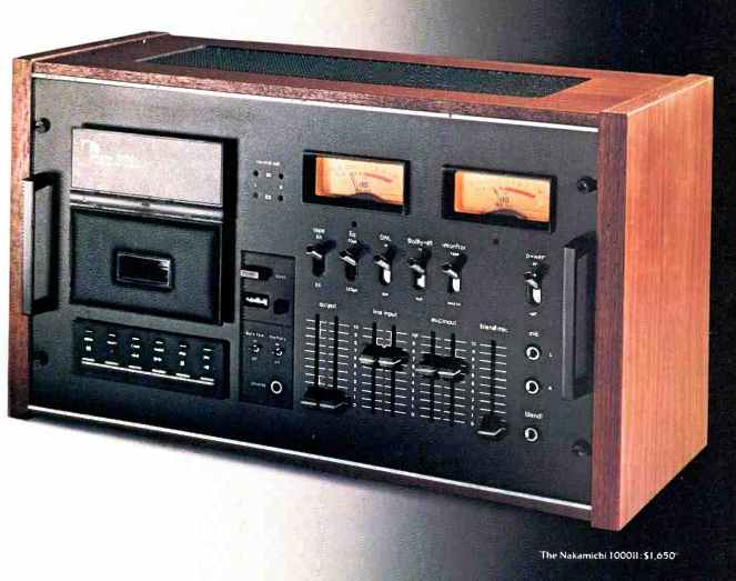 The big difference between this cassette deck and Pioneer's new CTF1000 isn't sound. It's Value. For years, Nakamichi has enjoyed a reputation for building the world's finest cassette deck. Now Pioneer is introducing something Nakamichi won't enjoy at all: the Pioneer CT-F1000. A cassette deck that offers all the features and performance of Nakamichi's best cassette deck, at less than half the price. PIONEER VS. NAKAMICHI: THE HEAD TO HEAD COMPETITION. The $1,650 Nakamichi 100011 and the $600 Pioneer CT-F1000 are both honest three headed cassette decks that let you monitor right off the tape as you record. Both have separate Dolby systems for the playback and recording heads. So when you're making a recording with the Dolby on, you can monitor it exactly the same way. Both have two motors to insure accurate tape speed. Both feature solenoid logic controls that let you go from fast forward to reverse, or from play to record without punching the stop button, and without jamming the tape. And both are filled with convenient items like automatic memories for going back to a selected spot on a tape, multiplex filters for making cleaner FM recordings, separate bias and equalization switches for getting the most out of different kinds of tape, and even a pitch control adjustment that lets you match the pitch of a cassette to the tuning of your guitar or piano. A $1,000 GAP IN PRICE; NO GAP IN SOUND. When we built the CT-F1000, however, we did more than match the Nakamichi's renowned features. We also matched its renowned performance. Both machines boast totally inaudible total harmonic distortion levels of less than 1.5%. Both have all but conquered the problem of wow and flutter. (An identical 0.05% for each machine.) Both offer similarly impressive signal to noise ratios: 64 decibels Pioneer, 65 decibels Nakamichi. (At these levels we dare you to hear any noise at all, let alone any difference.) And finally, where the CT-F1000 delivers a frequency response of 30 to 17,000 hertz, the Nakamichi deck goes from 35 to 20,000 hertz. (We offer a little more at the bottom; they offer a little more at the top. Either way, the specifications are close enough to be called virtually identical.) A FEW PIONEER ADVANTAGES THAT AREN'T MONETARY. To prevent you from making distorted tapes, the CT-F1000 has a peak limiter that the Nakamichi machine lacks. Our tape heads are made out of a special single crystal ferrite material that's been proven to last longer than the Nakamichi's permalloy variety. And our Dolby system can be calibrated by hand while the Nakamichi 10001I requires a screwdriver. Admittedly, the Nakamichi 100011 does feature a fancy azimuth control for aligning your heads before every recording session. But we've developed a more accurate way to mount the heads in the first place. So you can spend your time recording, instead of aligning. A FEW CONCESSIONS TO NAKAMICHI. Obviously, at almost $1,000 more, the Nakamichi 100011 must offer some advantages over the CT-F1000. And we'd be remiss if we didn't point out that their VU meters extend slightly higher than ours. And that they have extra input for premixed program sources. ![]() And although their signal to noise ratio is hardly different than ours, the Nakamichi 100011 does feature an extra Nakamichi-invented noise reduction system. Considering the slimness of these advantages, the choice is clear-cut: You can buy a Nakamichi 1000II and get an incredibly expensive cassette deck. Or you can buy a CT-F1000. And get one that's simply incredible. PIONEER We bring it back alive. *Manufacturer's suggested retail price. Handles optional at extra cost. U.S. Pioneer Electronics Inc., 85 Oxford Drive, Moonachie, N.J. 07074. --------------- TDK ![]() ![]() To get a superb performance, you need a precision machine. To command a great performance, a cassette shell and cassette tape must be engineered to the most rigorous standards. Which explains why we get so finicky about details. Consider: Precision Molded Cassette Shells--are made by continuously monitored injection molding that virtually assures a mirror-image parallel match. That's insurance against signal overlap or channel loss in record or playback from A to B sides. Further insurance: high impact styrene that resists temperature extremes and sudden stress. An Ingenious Bubble Surface Liner Sheet--commands the tape to follow a consistent running angle with gentle, fingertip-embossed cushions. Costly lubricants forestall drag, shedding, friction, edgewear, and annoying squeal. Checks channel loss and dropouts. Tapered, Flanged Rollers--direct the tape from the hubs and program it against any up and down movement on its path towards the heads. Stainless steel pins minimize friction and avert wow and flutter, channel loss. Resilient Pressure Pad and Holding System spring--mounted felt helps maintain tape contact at dead center on the head pap. Elegant interlocking pins moor the spring to the shell, and resist lateral slipping. Five-Screw Assembly--for practically guaranteed warp-free mating of the cassette halves. Then nothing-no dust or tape snags-can come between the tape and a perfect performance. Perfectly Circular Hubs and Double Clamp System--insures there is no deviation from circularity that could result in tape tension variation producing wow and flutter and dropouts. The clamp weds the tape to the hub with a curvature impeccably matched to the hub's perimeter. Head Cleaning Leader Tape--knocks off foreign matter that might interfere with superior tape performance, and prepares the heads for... Our famous SA and AD Tape Performance--two of the finest tapes money can procure are securely housed inside our cassette shells. SA (Super Avilyn) is the tape most deck manufacturers use as their reference for the High (CrO2) bias position. And the new Normal bias AD, the tape with a hot high end, is perfect for any type of music, in any deck. And that extra lift is perfect for noise reduction trackin