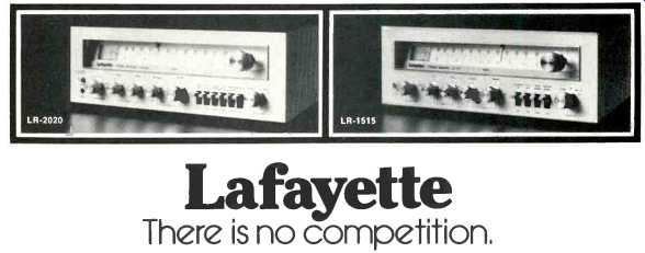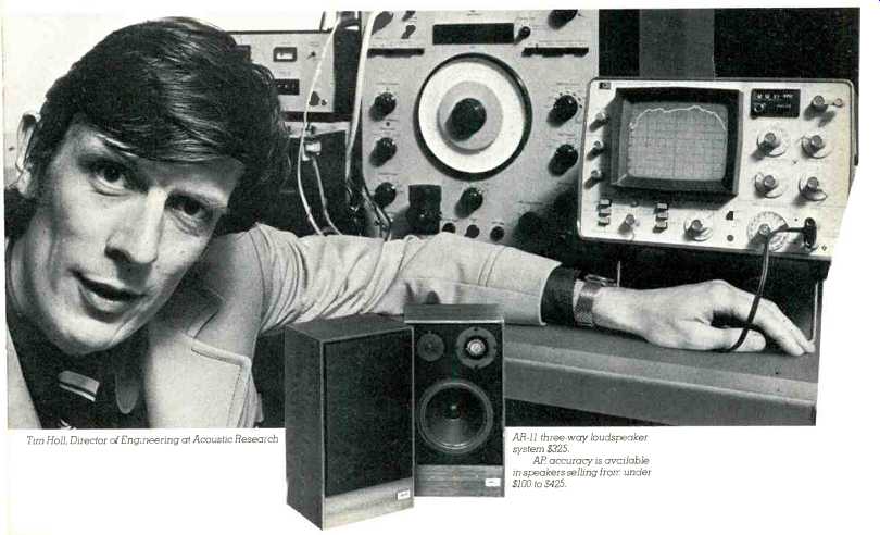 *Popular Electronics, August, 1976. ONKYO U.S.A.CORPORATION Eastern Office: 42-07 20th Ave., Long Island City, N.Y. 11105, 212-729-2323 Midwest Office: 935 Sivert Drive, Wood Dale, Ill. 60191, 312-595-2970 Canada: Sole Distributor, TriTel Associates Ltd., Willowdale, Ontario, Canada M2H 2S5 ============= Garrard.![]() A.The computer-designed True Tangent Tonearm keeps the stylus at a constant 90° tangent to the record groove, by means of an articulated head. The angle between the head (holding cartridge and stylus) and the shaft of the tonearm changes with each groove. Thus, while the tonearm swings in an arc over the record, the stylus is kept at a constant, true tangent. Tracking error is eliminated, with its consequent problems of record wear and harmonic distortion. B. Made of modern, low-mass magnesium, the GT55's tonearm weighs an astonishing 14 grams. It rides on jewel vertical pivots and horizontal ball bearings. Inertial drag and friction are reduced to absolute minimum levels. C. Anti-skating protection on the GT55 is provided by a unique, patented system. Completely non-mechanical, it operates magnetically, and varies in proportion to the actual skating force across the surface of the disc. It is calibrated for elliptical and CD4 styli. D. Cueing rate is variable, and the cueing operation is damped in both directions by the main cam of the turntable. E. The GT55 is the only belt drive multiple play turntable with a DC servo motor. Both the motor and the belt-driven automatic mechanism are completely new. The speed of the motor is continuously governed and regulated by an electronic servo system. The automatic mechanism is smooth and silent in both single and multiple play. It is also completely disengaged from the tone arm when the record is playing. F. Speed control is variable ±3%, and is electronically governed by the servo which controls the motor. Read-out is monitored by an illuminated stroboscope. G. The platter is four pounds, die cast and dynamically balanced for smooth, precise rotation. It is driven by a flexible belt, which insulates it from any possible motor vibration. H. The precision controls are conveniently grouped, and include selectors for single or multiple play, as well as a repeat-play option for use in either mode. Garrard. ![]() ![]() Turntable specialist for 50 years. Only three turntables in the world offer True Tangent Tracking. Bang & Olufsen, Rabco, and the new Garrard GT55. They play your records precisely the way the original masters were cut, with the stylus held at a 90° tangent to the groove. They eliminate harmonic distortion caused by tracking error. One of the three is also fully automatic in both single and multiple play. Its tonearm is low mass magnesium, balanced on jewel pivots. Yet it sells for the lowest price of all three as much as $400 lower! The new GT55. By Garrard. The GT55 Generation Two Turntable with True Tangent Tracking. Since the first flat disc record was made, just about 90 years ago, audio engineers have been searching for a way to eliminate tracking error. The master record is cut with a stylus that maintains a constant 90° tangent to the groove it is inscribing. Problem: play it back the same way. Anything else produces tracking error (maybe a little, maybe a fair amount), and that means distortion. In 90 years of search, turntable manufacturers have proposed an array of solutions. Some have been inventive, even ingenious; others have verged on the ridiculous. None until quite recently have been successful. Now there are three, all as different from any other turntable as the flat disc is from Edison's cylinder. Two of them solve the problem by a radical departure from traditional design: they move the entire tonearm across the record-pivot, counterweight and all. Ingenious. Complex. And expensive. Garrard found another way. Our half-century of turntable engineering culminated in a solution that retains the pivoted tonearm yet keeps the stylus in an absolutely true 90° tangent to the groove at every point from the record's outer rim right to the label. Further, we did this with a computer-designed tonearm made of the ultimate in lightweight, rigid metals: magnesium. It has the lowest mass (14 grams)--and the lowest inertial drag--of any multiple-play turntable. And it is automatic. Fully automatic. Silky-smooth, silently automatic, and therefore gentler and safer than the steadiest hand, whether you use it as a single play or a multiple play turntable. Garrard' s solution--the GT55--delivers other advantages, as well. Some small, some quite large, depending on what's important to you. And one overriding advantage. The others sell for prices up to $700. The GT55 is under $250. Which makes True Tracking not a costly privilege but an available benefit. To everybody. For your free copy of the new Garrard Guide, please write: Garrard. Division of Plessey Consumer Products, Dept. C, 100 Commercial Street, Plainview, N.Y. 11803 ============= AR![]() Some straight talk about loudspeaker accuracy from the people who invented it. Of over 100 speaker brands advertised on the market, all claiming supremacy for their product based on the kind of sound they produce, one leading company stands apart. It is Acoustic Research. We design, build and test our products to accurately reproduce all the sound information contained on your records, tapes and radio broadcasts, but no more. What you want from a loudspeaker is a precise recreation of what the recording engineer placed on your disc or tape, be it good, bad or mediocre. Only AR loudspeakers can guarantee you this kind of accuracy. The most important contributors to AR loudspeaker accuracy are an original design with inherently flat frequency response (the ability to reproduce faithfully the complete range of musical sounds, including harmonics, without emphasizing or subduing any of them) and a rigorous testing program to insure that this ideal-specification is fully realize