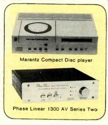 ![]() ![]() Cartoon: ... Mr. Walters called from the show. lie was demonstrating our new super equalizer and the people in the next booth said it was too loud and called the police and now he's in jail." Headphones. The impact on head phones of the Walkman-type personal portables was fairly evident. Audio-Technica announced that its Point One, Point Three, and Point Five headphones will all now come with 3.5-mm stereo pugs to fit the mini-portables' jacks and that the phones will be packaged with adaptors (also avail able separately) for the 1/4-inch jacks in most home equipment. The adaptor packed with the Point Five models will be combined with an extension cord, while the cord attached to the phones themselves will be shortened to prevent tangling. Since these small portables and their phones may be used outside in any weather, A-T offers ear muff-like Eskimo Winter Pad covers for small phones ($8). Koss' Sound Partner phones, introduced at the winter CES last January, paid even more attention to portability: they come equipped with adaptors for 3.5-mm mono earphone jacks as well as 1/4-inch stereo ones, and they fold for easy carrying. Stanton's Model XII Micro Wafer phones come with similar adaptors, but only one per phone-mono with the XI Im, stereo with the X I Is. Kenwood introduced three Light 'N Easy phones, the KH-7, K H-5, and KH-3. Mura added the Model HS (S15) to its ultralight "Red Set" line plus the new "standard" lightweight HV- 190 ($30). Sony. which started it all, expanded its miniature MDR headphone line with six new models, for a total of eight. Five of the six, ranging from the MDR-1T ($30) to the MDR-80T ($85), come with Unimatch adaptors for 1/4-inch stereo jacks. The sixth is (ES 81 the MDR-E33 ($35), lightest of the light, whose drivers hang directly from the ears without a headband. Koss has created a new two-way studio design, the Pro/4x, employing both a piezoelectric tweeter and a moving-coil element for lower frequencies. The two appear to be coaxially mounted within circumaural cushioned, closed-back earcups. Pioneer has brought out three new models, with the Master-IS being a comparatively conventional design and the SE-L5 and SE L3 ultra lightweight types. AKG's single new headset, the K-130 ($49), employs supra-aural earcups and transduction elements that are derived from moving-coil microphone elements. Beyer is using similar technology in a new line of three lightweight phones, the DT 330, DT 550, and DT 880. Tape Accessories. The most common tape accessories were head cleaners. The new Allsop 3 Ultraline has dual cleaning pads for auto-reverse cassette decks and comes with replacement cleaning pads; it's $15 in a soft case with a large bottle of cleaning solution, $10 in a smoked-plastic box. Broughton's Clean-n-Check ($7) not only cleans the heads but measures on a built-in gauge how well the tape transport is working. Discwasher's first tape product, the Perfect Path head cleaner, uses a dry, non-abrasive approach. Sony announced a slew of new tape accessories. For general use, there's a high speed tape eraser/winder, the BE-100 ($70), which rewinds and erases a C-60 tape in less than three minutes, and a $40 illuminated head demagnetizer. Another new entry, the RM-65 Synchro remote-control unit ($25), can be used to synchronize many of Sony's new cassette decks and turntables with each other for easier taping from records. Sony also introduced two new timers, the PT-77 and PT-55. The PT-55 ($95) can be programmed to start and stop a tape recorder at one preset time up to twenty-four hours in advance. The PT-77 ($195) can be set for up to eight events over a seven-day period. Sansui added the $150 AT-15 timer, a one-event, twenty-four-hour model, to its Super Compo systems line. Onkyo too showed a new timer, for $125, with convenient forward/reverse time setting, and Pioneer's DT 510 timer ($120) was also on display at the show. Disc Cleaners and Other Accessories. For record care, Audio-Technica announced the Techni-Clean Audiophile Record Maintenance System ($25), a brush with a unidirectional plush pad and a conductive body to drain away static charges. The kit includes a brush for cleaning the pad and a storage base to keep dust off it between uses. Hitachi had an automatic record cleaner that spun itself around the disc. Robins was the first I know of to pro mote the same accessories for audio and videodisc care: a forty-disc, L-shaped folding record rack and the Rob-o-Stat II anti static gun. One could confuse the Mobile Fidelity Geo-Disc with a specialized turntable mat since it's round and black and is meant to sit on a turntable. But there the resemblance stops. Molded into its upper surface are bars and grids whose purpose is to help align phono-cartridge offset, overhang, and tracking angle. Osawa also offered a new alignment protractor, the OS-60P, a calibrated grid with spindle hole and a mirror top ($6.29). Goldring showed a new accessory line: a balance-type stylus gauge; a stylus-care kit with mirror, brush, and 20X magnifier; and an ultrasonic stylus cleaner. The cleaner actually made its debut at the winter CES, as did Signet's ultrasonic model. And Osawa had a new stylus microscope on view. Nautilus displayed Super-Sleeves ($3.50 for a pack of ten), already in use as inner sleeves for the company's Superdiscs. To help you keep track of your discs, MJ Weber introduced its Record Finder kit, a color-coded labeling and indexing system with numbered record identifiers that can be placed to indicate where discs are misfiled or missing; it's $8.95 for a 120-record kit, $5.95 for a 90-record add-on. And Monster Cable announced that it will now distribute Cramolin, a contact preservative and cleaner made by Caig Laboratories. The $12 Cramolin kit includes both cleaner and preservative solutions. New signal switchers showed up too. Phase Linear rounded out its new accessory line with the Model 190 speaker-switching module ($95) designed 