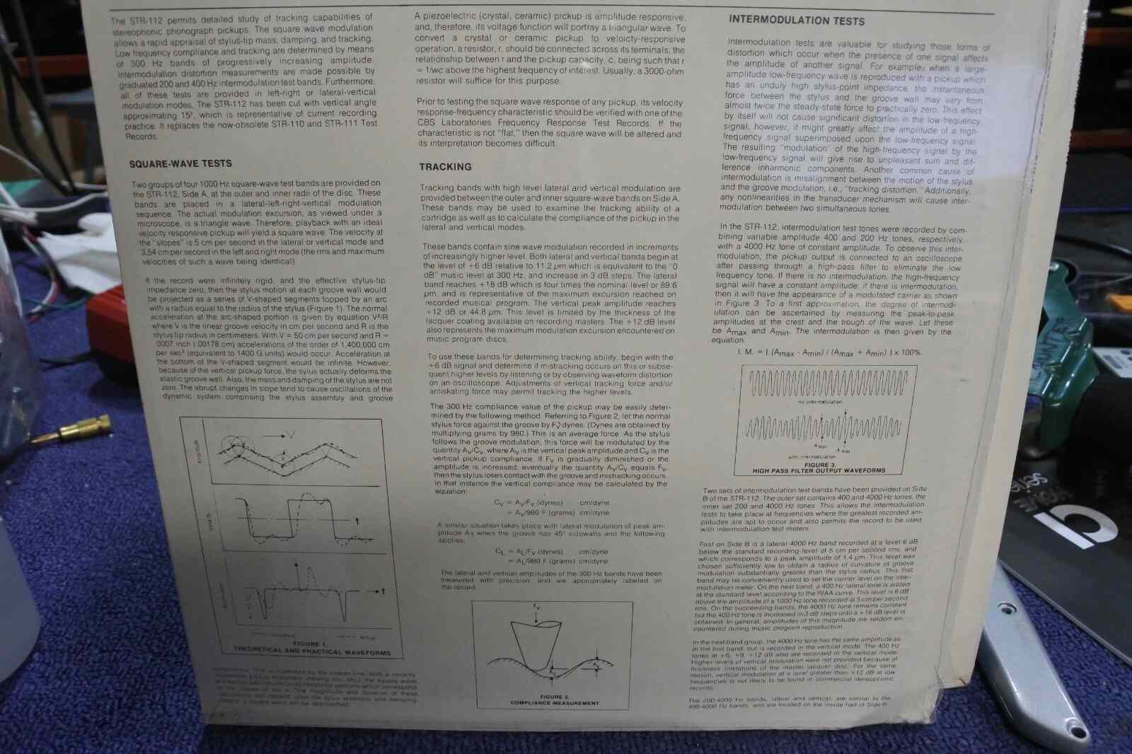 clamp. CBS Test Record for frequency sweeps and tracking tests. Not shown is
