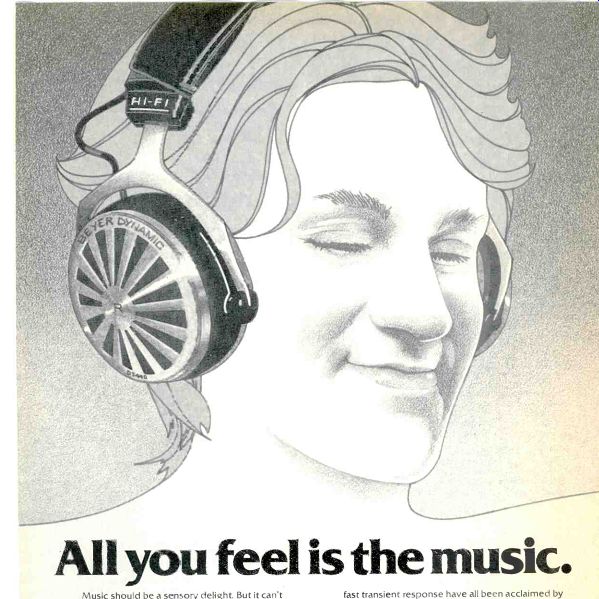 All you feel is the music. Music should be a sensory delight. But it can't give you the pleasure you deserve if your headphones squeeze your ears and hurt your head. The Beyer DT 440 is quite probably the world's most comfortable headphone. At 9 ounces, it's not quite the world's lightest (that record belongs to our Beyer DT 302). But with its sponge-padded ear cups and low-pressure air-tilled headband, it's so beautifully balanced it just about disappears. When you plug in the DT 440 you'll be part of an almost unbelievably realistic musical experience. The strong bass, high efficiency and fast transient response have all been acclaimed by sophisticated audiophiles, audio critics and musicians worldwide. And the DT 440's open-air, high-velocity design gives you a perfectly natural balance between recorded and environmentally-present sound. The overall sound is absolutely clear, yet at the same time, warm and rich. With smooth, undistorted reproduction across the entire audible spectrum. Stereo imaging approaches the ideal, providing accurate and dramatic locating of each and every sound source. Please visit your Beyer dealer. He'll make you feel better. BURNS AUDIOTRONICS, INC. 5-05 Burns Avenue, Hicksville, NY 11801 (516) 935-8000 In Canada, H. Roy Gray, Ltd.