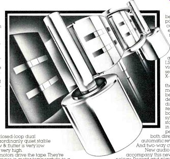TEAC TODAY THE X-SERIES. You're looking at four new machines that have more in common with data recorders than audio recorders. Together they are called the X-Series. And they bring a totally new kind of technology to the open reel format. Each X-Series transport is an instrumentation mechanism. For 15 years, this TEAC design has stood the grueling test of time in computer installations where dependability is worth millions. The basic configuration is closed-loop dual capstan. It's extraordinarily quiet, stable and precise. Wow & flutter is very low Speed accuracy very high. Three DC motors drive the tape. They're used to keep changes in motor temperature to a minimum under different loads so constant torque is maintained. Our Magnefloat flywheel assembly, a completely new concept, uses magnetics rather than mechanics to eliminate problem-causing springs and pressure plates. Axial variations between the tape and capstans are prevented so proper tracking is assured. The result is highly accurate audio reproduction even after years of hard use. The X-Series transport maintains ideal tape-to head contact. Audible drop-outs, level and frequency losses are absolutely minimized. Frequency response is wide and flat. And signal articulation is unusually clear. The brain behind the transport is our LSI control chip. It eliminates the need for mechanical relays so transport control is faster, more positive and reliable. The LSI also lets us provide full motion sensing in the X-10 and X-10R. Within the X-Series, machines have been specifically designed for bidirectional record and playback. Perfectly symmetrical head stacks (6 heads in all) assure top performance in both directions. There's automatic reverse and repeat. And two-way cue monitoring. New audio electronics accompany this new transport technology. Record and playback amplifiers are quieter and completely free of audible distortion. The sound is cleaner, more faithful to the source. The fidelity is unsurpassed. An option previously available only on our professional recorders can now be added to any X-Series machine. Called dbx I. this noise elimination system adds 30dB to the already high S/N and over 10dB of headroom to give you master quality recordings. If your audio perception is critical, your listening standards high, audition an X-Series recorder. The performance is flawless. The sound peerless. TEAC ----------------- Nakamichi