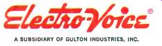 OF HILLS AND DALES RICHARD MILLER , Student Engineer A recent Electro-Voice project points up the close kinship between transducers intended for widely varying purposes. In this instance the task was to develop, for another division of Gulton Industries, an improved transducer for the measurement of surface roughness. In many respects, the device is quite similar to a phono cartridge. It includes a small ceramic element and a diamond stylus that traces the surface to provide an electrical output analogous to the surface variations under test. Parameters for the gauge must relate exactly to the USA Standards for surface measurement. Using a 0.5 mil spherical tip diamond stylus, the transducer is typically driven across the surface to be measured at a rate of about 1/$"/second. A meter provides a readout of average amplitude variation in micro-inches. Alternatively, the surface can be plotted with a graphic recorder. An output of 0.10 millivolt is equivalent to 1 micro-inch deflection of the stylus. This output relationship is maintained even though the stylus tip is not exactly perpendicular to the surface under test. In order to accommodate a broad range of surface irregularities, equalized response from the probe is flat from 4 to 1200 Hz. and the performance is checked on specially prepared phonograph records played at sub-normal speeds. Because surface measurement must not harm or deform the product under test, the probe must exhibit high compliance. While a typical ceramic phono cartridge may be rated at 5x10^-6 cm/dyne, and a good magnetic might measure 20x10^-6cm/dyne, the surface gauge ceramic system has a rated compliance of 50x10^-6cm/dyne. This high compliance also reduces element breakage, a serious problem with earlier designs. Surface measurement systems of this type find wide application in thick-film electronic circuit production, where varying surface characteristics can affect performance. The gauges are also used to determine quality of metal parts finish, predict heat transfer ability, and other applications where surface texture is critical. For reprints of other discussions in this series, or technical data on any E-V product, write: ELECTRO-VOICE, INC., Dept. 1193A 602 Cecil St., Buchanan, Michigan 49107 A SUBSIDIARY OF GULTON INDUSTRIES. INC. ============== ![]() SPANISH/Oak; CONTEMPORARY/Pecan; TRADITIONAL /Cherry Un-retouched photographs and the unvarnished truth about the new ARIES Console Speaker System.If you are as serious about musical reproduction as we are, the following discussion may help you in choosing your next speaker system. And the actual response curves and tone burst tests may prove most revealing when compared with other speaker systems currently available. Aries is an uncommon speaker system. Larger than the ubiquitous bookshelf speakers for a very sound reason: greater internal volume permits a worthwhile extension of bass with lower distortion and higher efficiency. Effective use of this volume comes from a 12" woofer with 9 1/2 pound magnet structure, new sealed-foam half-roll surround, and rigid deep-cone geometry. It's a combination that insures 3/4" linear cone movement, precise transient response, and high power handling capacity without frequency doubling. The mid-range was designed with equal care. A specially treated 6" cone speaker is mounted in its own sealed inner enclosure. Speaker resonance is well below the crossover point to insure peak-free response and clean transients in this sensitive part of the spectrum. Oscilloscope testing of every unit is routine so that laboratory standards are maintained in production. The Aries 2 1/2" cone/dome tweeter is particularly unique. For instance, to obtain ultimate response, damping compound is metered onto the cone within a tolerance of ±0.001 oz. And control of cone/dome materials insures a radiation area that varies predictably with frequency to insure uniform dispersion at all frequencies. ![]() ![]() Even the crossover network is unusual. Four inductors (iron-core type for the woofer to avoid losses), three capacitors (with a Mylar type for the tweeter to maintain response beyond the high frequency limitations of electrolytic types), and a 5-position rotary ceramic switch offers precise control with up to 10 db attenuation at 10 kHz. But Aries is more than a distinguished music reproducer. It is also handsome furniture in its own right. Tasteful design and robust construction set Aries apart from the anonymous styles of the past. In every detail from the hidden 2' x 4" bracing to the authentic hardware and richly finished hardwood veneers, Aries can be an attractive addition to your home ... a delight to ear and eye. See and hear the new Aries at your E-V dealer's soon. Look ... touch ... and above all, listen. It can be an eye-opening experience. $275.00. ELECTRO-VOICE, INC., Dept. 1194A 602 Cecil Street, Buchanan, Michigan 49107 A SUBSIDIARY OF GULTON INDUSTRIES, INC. -------------- (Audio magazine, 11/1969) Also see: ABZ's of Stereo FM--Modern Switching-Circuit Decoder = = = = |