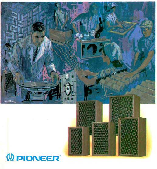 ![]() Pioneer has a magnificent obsession ...with quality Case in point. Pioneer speaker systems. Our engineers combine the latest knowledge of audio state of the art with the highest quality materials and components to produce the ultimate in loudspeaker performance. Pioneer's exhaustive program of quality control is constantly maintained since we produce every single component from cone paper and crossover networks to the latticework grilles on our own production lines. Each step along the way is typical of Pioneer's dedication to quality craftsmanship. The same follows through in cabinet making. Our skilled designers and handcrafters make the enclosures as acoustically perfect as possible, to match the advanced design of the speakers. This means hand selecting the finest walnut, seasoning it properly to remove humidity, trimming it precisely by computer control, assembling it under climate controlled conditions and facilities, laminating and molding the latticework grille. The staining process alone requires 10 steps and utilizes an exclusive oil created by Pioneer. Quality comes with painstaking experience. And Pioneer has over 30 years of it. The end result:: speaker systems acoustically designed and constructed to provide the pinnacle of sound reproduction and the gracious elegance of contemporary design. That's why they're called the Outperformers. Hear them today at your Pioneer dealer. CS-63DX-4-way 6-Speaker System with 15" woofer ". $259.00; CS-99-5-way 6-Speaker System with 15" woofer 16" x 25" x 11 3/4" . $215.00; CS-88-3-way 5-Speaker System 24356" x 143f6" x 13". $175.00; CS-66-3-way Bookshelf System '. $109.00; CS-44-2-way Bookshelf System 19" x 11" x 9". $67.50. PIONEER ELECTRONICS U.S.A. CORPORATION, 140 Smith Street, Farmingdale, N. Y. 11735 (516) 694-7720 West Coast: 1335 W. 134th St., Gardena, Calif. 90249 (213) 323-2374 and 321-1076. In Canada: S. H. Parker Co., Province of Ontario