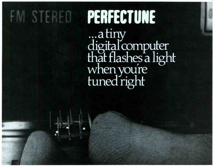 PERFECTUNE ... a tiny digital computer that flashes a light when you're tuned right ![]() Inside Scott's new 382C AM/FM stereo receiver is a specially-developed digital computer circuit called "Perfectune," that takes the fiddling, guesswork, and wasted time out of tuning ... gives you perfect sound, instantly, every time. How does it work? The Perfectune integrated circuit scans the other tuner circuits and decides exactly when you have tuned for both lowest distortion and best reception. It then flicks on the Perfectune light. Perfectune gives a far more exact reading than a meter, which may read at its highest point when the signal is masked by interference. The Scott 382C still has a meter ... but it's a signal strength meter you use only to position your antenna for optimum signal ... then you let Perfectune take over for perfect sound! Perfectune is only one of the advanced Scott features that make the 382C your best AM/FM stereo receiver buy. The photos below show some of the other Scott exclusives incorporated in this superb unit. ![]() Full complement of 7 Integrated Circuits ... more than any competitive receiver. "Wire-Wrap" ... a permanent connection technique that eliminates solder joints. New IC multiplex section that gives better stereo performance and reliability. Full-Complementary Output circuitry that gives virtually distortion-free listening at all levels. Snap-in printed circuit modular construction for reliability and ease of service. Specifications: Power (± 1 dB) 110 Watts. IHF power specifications @ 0.8% distortion, both channels driven: Dynamic power @ 4 Ohms, 45 Watts per channel; Continuous power @ 4 Ohms, 33 Watts/channel, @ 8 Ohms 25 Watts/channel. Selectivity, 40 dB; Frequency response, ±1 dB, 15-30,000 Hz; IHF power bandwidth, 15-25,000 Hz; Cross modulation rejection, 80 dB; Usable sensitivity, 1.9µV; Stereo separation, 30 dB; Capture ratio, 2.5 dB. Prices and specifications subject to change without notice. Walnut-finish case optional. Choose either the 382C AM/FM stereo receiver at $299.95 or its FM stereo counterpart, the 342C at $269.95. 1969, H. H. Scott, Inc. SINE WAVE POWER OUTPUT PER CHANNEL IN WATTS Full Complementary Output circuitry that gives virtually distortion-free listening at all levels. Snap-in printed circuit modular construction for reliability and ease of service. H.H. SCOTT For detailed specifications, write: H. H. Scott, Inc., 111 Powdermill Road Maynard, Mass. 01754. Export: Scott International, Maynard, Mass. 01754. --------