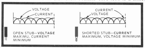 ...that you inspect each antenna installation at least generally when servicing any receiver that indicates weak or ghosty reception. Further, the old conical or V-type antenna that did a half-way job for black and white may just kill color reception on one or more channels and produce multiple headaches unless your initial problem is recognized. Now, you might ask, "Why is one transmission line better than another?" In any transmission line there are voltages and currents (Fig. 13-3), both coming and going, that can be calculated as the sum of the incident (outgoing) wave and the reflected (incoming) wave. If the line is an open stub, the voltage at the reflecting end is maximum and the current minimum. But if the line is shorted, the current is maximum and the voltage minimum, again at the end furtherest from the signal source. Voltage or current along any transmission line can have maximum and minimum amplitudes and the standing wave ratios (SWR), can be expressed as the ratio of either the E_max divided by E_min voltages or Imax divided by I_min currents. However, IF a transmission line is terminated in an impedance that matches the impedance of the line itself (characteristic impedance), there will be no standing wave ratio and the line will deliver as much signal as it can without interference or undue loss. At this point, the load impedance equals the characteristic impedance, and the power-factor angle of the line is zero, making it virtually a pure resistive impedance. Obviously, the closer a 300-ohm line matches a 300-ohm antenna and a 300-ohm tuner, the more signal can be delivered to any terminating load.