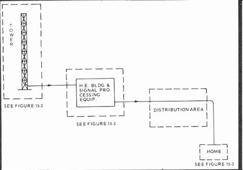 With cable television serving 5.5 million homes already in this country through 2700 systems and, by 1975, 1.7 million more are expected, this industry's size and potential is already formidable. In the not too distant future, two-way communications to and from many CATV subscribers' homes may well be in operation, offering shopping services, computer links, banking, schooling, trend polling, and even employment to those who wish such services. For a good look at CATV and what engineers and technicians are going to contend with, we went to Philadelphia, Pa., and talked with Jerrold Director of Technical Operations, Mr. Caywood C. Cooley, Jr. First we asked, "How do you go about setting up a CATV facility?" And this, generally, was his reply (Figs. 15-1 through 15-4). SEE FIGURE 15.3