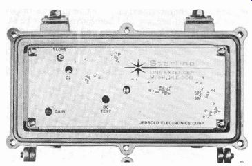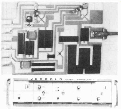 First you select an antenna site, called a head end, make all sorts of signal measurements from ground level or from over-flights in light aircraft or helicopters, then negotiate for real estate. Meanwhile, avoid a site overlooking a city because of neon signs, etc.; pick a spot free from ghosting and differentials between video and sound caused by local propagation conditions. When these conditions have been satisfied, the receiving antennas are selected. Log periodics are preferred, and are a must on the low-band channels. But on the high band, horizontally stacked yagis can be used to advantage to change pattern lobes, directional pickup, and the like. Next come the preamplifiers, then UHF to VHF converters, with UHF preamps fastened directly to the tower. Downleads are all through wideband static couplers, with cable in aluminum sheathing and either a polystyrene or polyfoam dielectric. In the antenna shack, the received signals are fed into heterodyne signal processors such as that shown in Fig. 15-5. Video and sound are converted to two intermediate frequencies (IFs), then both are AGC controlled to establish a level and maintain a constant ratio between sound and picture carriers. In a normal broadcast transmission, the sound carrier is about 6 db below video, but in CATV, Mr. Cooley channel rejection in all but the very poorest receivers. From the IF frequencies, the signal is beat back up (heterodyned) to the channel desired on the cable. Some systems use a single-channel, others a 26-channel tuner, which separates the various modulations on the carrier and puts a number of channels into a single channel through the tuner of a television receiver. If receiver top converters are used, amplifiers must suppress any second-order harmonics by output cancellation to avoid, say, a Channel 2 and a Channel 6 beat, that will fall at 140 MHz and give you problems if you're using that particular frequency. There's also cross modulation (one channel modulating another) which causes what is commonly known as a windshield wiper effect on the desired channel. It is caused by the horizontal blanking bar of the interfering channel when an amplifier is delivering more output than it should.