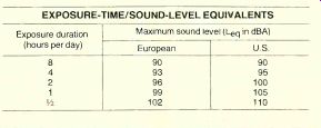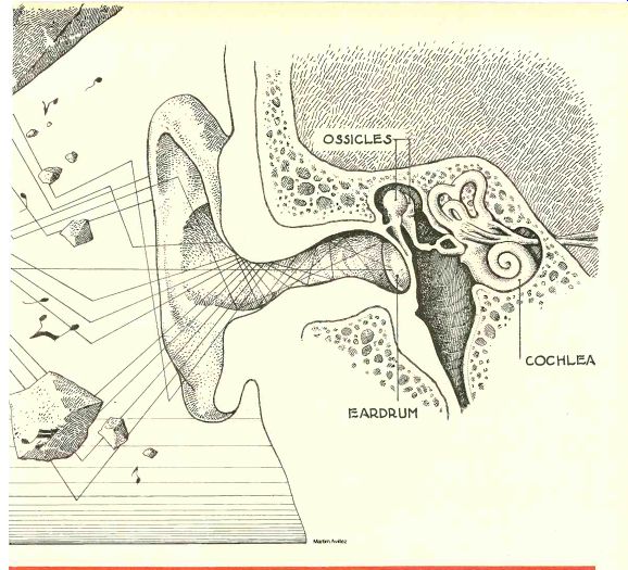 by Alex Burd Sociocusis, in case you didn't know, is the damage to hearing resulting from one's social or leisure activities. Sport shooting, auto racing, and loud-music listening have all been recently condemned as potential hazards to hearing. Rock music in particular has been singled out-usually by those not overly involved in its pleasures-as being an especially insidious source of hearing damage. In May 1974 an article appeared in these pages describing the audio equipment requirements for listening to rock or classical music. The necessity of achieving realistic volume levels together with a dynamic range adequate to convey the music's impact and excitement were felt to be important characteristics in the selection of suit able equipment, and it was reported that stage-monitor speakers that can produce a level of 130 dB at the per former's ears are accepted as "loud enough," while levels of "only" 105 to 110 dB are required for discos. Such sound levels are apparently far in ex cess of the noise levels permitted in industry by current Occupational Safety and Health Act standards (see accompanying box "Noise and the Law") and would appear to portend the coming Day of the Deafened Disco Dancer. In England, at least, concerned local authorities have reacted by proposing various legal restrictions on permissible public sound levels. Yet some experts on hearing damage seem unconcerned. Such disagreement, explicit or implied, leaves the question of greatest concern effectively unanswered: Is there a real risk? Ears and Hearing To understand the problem, you have to know something about the hearing process itself. The ears are a remarkably efficient pair of transducers for converting complex air-pressure variations into electrical signals, which are then interpreted by the brain as sounds. Each ear includes an ear drum which is set into vibration by sound waves and a mechanical coupling sys tem of three bones that transfers the drum movement into a fluid-filled chamber called the cochlea. Within the cochlea there is a membrane (Basilar) which is set in motion by the pressure variations in this fluid. Myriad nerve fibers then detect the minute motions of this membrane and feed the information, in the form of electrical pulses (not an audio waveform), to the brain. At its most sensitive, this system can detect pressure variations that are little greater than the random movements of air molecules. At the other extreme, it can withstand sound pressures that are one million times as great, enough to produce a physical sensation of pain in the ear. Pressures in the range of 10 million times greater will inflict irreversible damage on the ears' internal sensors or on the moving parts. This range of sensitivity, encompassing the entire range of natural noises, is the result of the millions of years of evolutionary development that permitted primitive man to detect the quietest footfall of a predator while at the same time sparing him auditory overload from the noise of a thunderstorm or a large waterfall. The sensitivity of the ear varies considerably with frequency, being most sensitive in the mid-range between 1,000 and 7,000 Hz. The level of sound at this frequency that can just be detected by a person with good hearing is taken as the base line (0 decibels) from which sound-pressure levels are measured. A curve joining values of the pressure that can just be detected at different frequencies is known as the threshold of hearing, and this threshold is important for audiometry, the science of hearing measurement. IT has been known for many years that sound levels which may not be instantaneously damaging can nevertheless produce a gradual deterioration of the hearing faculty. Boiler making, for ex ample, has traditionally been regarded as an occupation that would render those working in it increasingly deaf throughout their working lives. Many other industries, such as weaving or shipbuilding, have similar reputations. Industrial studies have shown that people whose working environment ex poses them to sound levels of 90 dBA or more will suffer a gradual raising of their threshold of hearing. Among audiologists, this is referred to as "thresh old shift." A person who is immersed in such, a sound level for all his working life stands a fair chance of being partially deaf by the time of retirement. Of course, the picture is not that clear cut-all of us lose some of our hearing acuity with advancing years while, at the other extreme, some people show a remarkable resistance to hearing dam age-but statistically, the observations are valid. ![]() -------- Andre Gill's nineteenth-century caricature suggested that redesign of the ear might be necessary to accommodate Wagner's music. The music sound levels of up to 130 dB mentioned earlier certainly seem to point to the existence of a real hazard. Of course it is important to keep in mind that sound levels are usually not continuous at the quoted figures (music would be incredibly monotonous if they were); the numbers merely indicate momentary peaks. How, then, can we assess the possible hazard that may result from listening to loud music? It is accepted by most authorities that it is the total energy absorbed by the ear that affects the hearing system. Two factors contribute to this energy. The first is the equivalent continuous sound level, or Leq. The Leq is that sound level which, if it were present continuously, would contain the same total energy as the noise (or music) being considered. In other words, a five minute noise that measures 90 dB SPL has the same energy content as a noise that measures 93 dB for 2 1/2 minutes, or 87 dB for 10 minutes. In the case of music, of course, where the level varies constantly, the measurement and/or calculation is somewhat more complicated. The second factor is the duration of the exposure in terms of hours, weeks, and years. These two factors, taken together, allow us to calculate the "noise immission level"