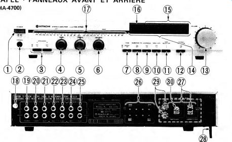 When we drove both channels at 1,000 Hz into 8-ohm loads, the output waveform clipped at 60.5 watts for an IHF clipping-headroom rating of 0.83 dB. The amplifier is not rated for use with lower load impedances, but we measured clipping outputs into 4 and 2 ohms of 54.8 and 25.2 watts, respectively. The IHF dynamic headroom (8 ohms) was a very good 2.58 dB, corresponding to a maximum short-term output of 90.6 watts. Into 4 and 2 ohms the dynamic power output was 60 and 29.7 watts, respectively. For a reference output of 1 watt into 8 ohms, the HA-4700 required an input into the AL x jack of 24 millivolts (mV), 0.32 mV into the PHONO (MM) jack. The respective A-weighted noise levels were -83 and -81 dB referred to 1 watt (both very good readings for an integrated amplifier). The phono-preamplifier stage overloaded at a high 230-mV input at 1,000 Hz, and the equivalent overload limits at 20 and 20,000 Hz were 250 and 152 mV. The phono-input impedance was 46,000 ohms in parallel with 250 picofarads. Although we made no measurements with the MC input, its gain is about seventeen times higher than the MM input (+24 dB), and it terminates the cartridge in 100 ohms. The harmonic distortion of the Hitachi HA-4700 was extremely low. With 8-ohm loads, the distortion at 1,000 Hz was between 0.004 and 0.008 per cent from I to 50 watts output, reaching the rated 0.02 per cent at 60 watts just as clipping was beginning. The performance into 4-ohm loads was generally similar, with distortion readings falling from 0.03 percent at 1 watt to well under 0.01 percent between 20 and 50 watts and rising to 0.08 per cent at 55 watts. The amplifier's output-current limitations prevented it from delivering much power to 2-ohm loads, and its distortion was in :he range of 0.015 to 0.04 percent for outputs up to 25 watts. The two-tone intermodulation-distortion measurement with equal amplitude signals at 19 and 20 kHz revealed no detectable second-order distortion (1,000 Hz) and a barely detectable third-order product (18kHz) at -92 dB referred to the rated 50-watt output of the amplifier. The slew factor was greater than 25, and the amplifier rise time was 4 micro seconds. The overload-recovery time (from a 10-dB overdrive condition) was a negligible 5 microseconds, and the amplifier was stable with simulated complex reactive speaker loads. The distortion at rated power output was no more than 0.002 to 0.008 per cent over most of the audible frequency range, reaching a maximum of 0.015 percent at 20,000 Hz and falling to a nearly unmeasurable 0.0007 percent from 3,000 to 7,000 Hz. At half and one-tenth power the shape of the distortion curve was similar, with only slightly higher readings. The tone controls had a sliding bass-turn over frequency (from about 100 to 500 Hz) and treble curves hinged at 2,000 to 3,000 Hz. The maximum bass boost occurred in the range from 50 to 100 Hz. The loudness compensation boosted both low and high frequencies, but only moderately. The "subsonic" filter appeared to have only a 6-dB-per-octave slope, with its-3-dB response at 60 Hz and-10 dB at 20 Hz. The RIAA phono equalization was accurate within ±0.25 dB from 20 to 20,000 Hz, and the inductance of most cartridges caused no more than a 0.5-dB rise in the output be tween 10,000 and 20,000 Hz. Comment. The Hitachi HA-4700, although appearing with relatively little fanfare or publicity, has most of the features that have been seen of late in the top amplifiers of many other manufacturers. It is a compact, handsomely styled, and versatile amplifier that sounds as good as it measures. No manner of sonic flaws or operating "glitches" showed up in our testing or listening to the amplifier, and we came away with a thoroughly positive impression of its performance and overall design. The HA-4700 has a very comprehensive protection system that manages to be completely unobtrusive as well as effective. A short circuit across the outputs will shut down the amplifier if it is driven hard, and the power must be switched off for a few seconds to restore it to service. Although a d.c.-offset voltage at the output will also silence the amplifier, it recovers from that automatically when the fault is removed. There is also a thermal cut-out that shuts the HA-4700 off if it becomes too hot. None of these protective systems operated during our tests, in spite of their severity, but it was reassuring to know they were there and waiting if need for them arose. The schematic of this HA-4700 amplifier (pre-amp section) revealed a feature whose presence we would not have suspected from our measurements. A major problem of modern hi-fi systems is their susceptibility to interference from strong radio-frequency fields from nearby transmitters. Often these signals enter through the phono leads, overloading the low-level stages and superimposing the modulation of the r.f. signal on the regular program (or even completely obliterating the program). External filters are a possible treatment for this condition, but their success is uncertain, and there is also the possibility of de grading the amplifier's frequency response by an improper cartridge termination. Hitachi has built an L-C low-pass filter into the HA-4700 at the phono input. We calculate that the filter has a cut-off frequency of about 1.5 MHz, which should help in cases of interference from nearby CB or amateur radio stations, although it probably will not do much if one is unfortunate enough to live in the shadow of a powerful AM broadcast station. So far as we can see, the only sacrifice made for this feature is the relatively high 250-pF input capacitance of the phono section, but this should not cause problems with most combinations of record player and cartridge. [Note: a tweak to improve the phono section mau include elimination of this filter; and simply enclose the amp in a grounded metal cabinet.] The Hitachi HA-4700 is, therefore, a thoroughly up-to-date, very high-quality, moderate-pow
