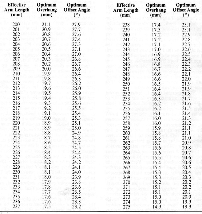 Part III of our series, in which we simplify (without compromise) our lateral and vertical tracking alignment instructions, clear up a few misunderstandings, and talk about some far from negligible new products. Some of our readers haven't quite recovered from the shock of being told that nearly all tonearm mounting holes are drilled in the wrong place, nearly all headshells are offset at the wrong angle, and nearly all cartridges are mounted in the wrong position within the head shell. That these ridiculous errors should be permanently frozen in the design specs of tone arms and turntable/arm systems, as well as in tone arm manufacturers' mounting instructions, is something the average audiophile finds hard to swallow. Add to that the incorrect vertical tracking angle (VTA) designed into the majority of cartridges, and we begin to get re actions from "I don't believe it" to "I give up." Well, you had better believe it and you had better not give up, otherwise your $10,000 stereo system is a joke. No system, no matter how sophisticated, can correct the time-dispersive distortions introduced right at the stylus tip of an incorrectly aligned cartridge. And those distortions are readily audible, assorted Polly-annas and vested interests to the contrary not withstanding. For the benefit of our new subscribers and of all those who found our original presentation of the subject (Volume 1, Numbers 1, 4 and 5) a bit more than they had bargained for, we want to restate our basic message as simply and inescapably as we can, at the same time making the alignment instructions somewhat more ob vious and palatable. The playback stylus must mimic the cutter stylus. As you undoubtedly know, a stereo groove is cut both laterally and vertically. The lateral motion of the cutter stylus, when the original lacquer master is made, always takes place along a radius of the record, i.e., the line passing through the stylus tip and the turntable spindle. That's inherent in the geometry of the cutter mechanism. The vertical motion of the cutter stylus is not perpendicular to the record, as you might think (and as would be simplest), but occurs at an angle that deviates from the perpendicular by 15 to 18.5 degrees in modern cutting practice. Now, the only way you can get the identical waveform out of the terminals of the playback cartridge as went into the terminals of the cutter head is to duplicate this lateral and vertical motion, without any angular errors, at the tip of the playback stylus. That's all there is to it. If the lateral motion of the playback stylus is not exactly along a radius (lateral tracking error) and/or if its vertical motion is rot inclined at exactly the original cutting angle (vertical tracking error), the result is not only simple harmonic and IM distortion, as has been popularly assumed, but also frequency inter modulation (FIM) and frequency cross-modulation (FXM) distortion, which are time-dispersive and therefore much more audible and disturbing. The mathematical proof of this is 37 years old in the case of lateral tracking error and at least 15 years old for vertical tracking error (see the references in our original articles), so we're getting just a little tired of arguing about the inarguable with resisters of Mother Nature who haven't done their home work. (Some of them in surprisingly high places, we might add.) The point is that, when your reference signal is riddled with FIM and FXM distortion, you can't tell how good or bad the components are that you're listening to. Therefore, all subjective evaluations of audio equipment where phonograph records are the program source must be considered highly suspect unless the cartridge has been aligned within an inch (or rather 0.005 inch) of its life. And one way to make virtually certain that the cartridge is misaligned is to mount it dead straight and trued up in the headshell of a tone arm that in turn is mounted on the turntable according to the manufacturer's instructions (or even by the manufacturer). A quick check of your own arm and cartridge against the data presented below will confirm that outrageous statement- unless, of course, you're one of our regulars and have already performed the corrective alignments. Unfortunately, we're the only re viewers to keep harping on this subject, which may be one reason why we sometimes come to different conclusions than our colleagues, especially about cartridges and preamps. (Components such as speakers, headphones and power amps can also be evaluated with tapes, although we don't know of too many reviewers who use 30-IPS master tapes like ours, either.) The positive aspect of the matter is that a correctly located stylus will reveal unsuspected treasures in your record collection; suddenly you'll discover that a large percentage of 12 inch LP records, both old and new, sound quite excellent when the information in their grooves is extracted unaltered. In fact, the overall sonic improvement after a typical phono setup is brought into precise alignment is generally greater than what audiophiles expect, and get, when they switch from one good cartridge or preamplifier to another. Therefore, our final word of advice is: align before you switch. (You've just saved yourself the equivalent of a lifetime subscription to The Audio Critic.) The basics of lateral tracking alignment. There are only two kinds of tone arms capable of error-free lateral tracking and requiring no lateral alignment computation. One is the theoretically ideal straight-line tracking kind, exemplified by the Rabco variants and the Bang & Olufsen. Unfortunately, we've never run across one that was the equal of the best conventional arms in its solution to more mundane design problems, such as bearing play and arm tube resonances. (Of course, we haven't seen every one of the basement work shop mods.) The other is the pantograph-type arm, of which the Garrard tangent-tracking changer arm is the best-known current example. Th