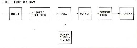 A Dynamic Range and Clipping Indicator-- What's really going into your power amp's input? by DAVID M. WHITE, JR. THIS ARTICLE IS A RESULT of listening to sonic aberrations in my stereo system. I could hear my system break up, but I had no way of telling whether the problem originated in the amplifiers or the speakers. I thought of solving the problem through a device with a LED readout; but after reviewing TAA back issues, technical books, and commercial items, and consulting friends, I realized that what was available was either limited in dynamic range, or overly complicated, or both. Another problem was that most devices measured the amplifier's out put, which I could not do as I direct couple class A tube amplifiers to my mid-range and tweeter panels. So what started out as a simple clipping indicator quickly became a dynamic range indicator as well. Watching the fantastic dynamic range of some of the direct discs is a very illuminating experience (no pun intended)--I have observed over 60dB. I have also watched the 6-10 dB maximum range of some rock stations. I am also amazed at how much of the time amplifiers in a multi-amp system can be noticeably clipped while reproducing wide dynamic range material. A friend once calculated it would take 8500 watts to drive AR-3As to live symphonic levels in a living room. WHAT DO WE WANT? Let's define the perfect dynamic range and clipping indicators: It: 1. has flat frequency response from 20Hz to 20kHz; 2. can detect both positive and negative wave-form clipping; 3. has fast attack and slow decay; 4. can display a single half cycle of clipping at 20kHz; 5. can easily be adjusted for various amplifier sensitivities from .5VRMS to 2.25VRMS for 0-dB; 6. has dynamic range of -100dB to +20dB; 7. is thermally stable; 8. is easy to build, adjust, and set up, and uses readily available parts. How well have I succeeded? ( a) frequency response measured on a continuous sine wave referenced to 1kHz is 0-dB at 20Hz, -0.5dB at 20kHz, and only 1.7dB down at 100kHz. ( b) There are several reasons for the extremely wide bandwidth. The - 3dB low frequency rolloff at .16Hz will immediately reveal any rumble in the turn-table/arm/cartridge combination. The high frequency response will show any tape recorder oscillations or CD-4 carrier leakage. The high speed precision rectifier allows display of both positive and negative peaks. ( c) I designed the unit to have a - 60dB to 0 dB turn-on time of 22u S and a decay time of 300mS. I chose 22uS attack time to allow display of . 5Hz at 20kHz, while the 60dB decay time of 300mS allows the readout to decay slightly faster than the reverberation time of a living room or a studio. ( d) Potentiometer P1 allows easy adjustment of the input sensitivity. All you need to set up the circuit are an audio oscillator and a sensitive VTVM. ( e) Thermally the unit is fairly stable; it settles to normal operating conditions in about 30 seconds. ( f) The unit is straight-forward and easy to build. Only a few parts are not readily available, although I have specified many 1% resistors. The LM334 is the only part you may find difficult to obtain. ( g) Only in the dynamic range did I have to make serious compromises: I had to cut the -100dB range to - 60dB. Even - 60dB is pushing things as it is 1mV AC RMS referenced to 1 volt at 0 dB. -100dB is 10uV, much lower than the 50uV noise out put of most preamps. If you have had the opportunity to make very low level measurements, you know the difficulties you can run into: leads have to be shielded, hum is a constant problem, and the noise is not weighted. I waived the + 20dB be cause few preamps, crossovers, etc., can put out over 10VRMS and I would have required a power supply of more than ± 15VDC. In any case, the remaining 70dB range will more than tax your stereo system. HOW TO DO IT For an outline of the indicator's design and operation, refer to the block diagram in Fig. 5. The input block consists of C2 which prevents DC voltage from causing false readings, while R33 provides the 100k input impedance to avoid loading down the source. The high speed rectifier consists of IC1 and IC2 . The precision rectifier allows us to measure both positive and negative peaks. I chose the LM301s for their high output current of 25mA. Resistors R27 and R28 are in the circuit for stability and to give the holding circuit an RC charging time of 22uS ( T= 0.22uFx 10x 100); I picked 22u S because a 20kHz sine wave has a half-cycle time of 25uS. The current required is: ![]() -----Fig 5 dv __ dt c dvxc dt dv is 1.5VRMS reading) 2. 12V 2.lZx .22x 10_a x 1.414 peak =i=2lmA 22iiS The holding circuit consists of capacitor C1, C and zener diode D C is discharged by constant current source IC a National Semiconductor current source adjustable by one resistor from 1 to 10 mA. It can also be compensated for thermal stability, but we don't need to do that for this unit. Because the LM334 has to have a 1.5 volt differential across its terminals, I added the zener diode to provide -3V so the current sink will go below 0 volts. You may be wondering why I made things so elaborate. Well, we could replace the whole set of parts with a resistor, but this causes one problem: the discharge through a resistor is not linear. In some cases it would take five minutes to discharge the capacitor. I picked 300mS as the display decay time from 0dB to - 60dB because the reverberation of most living rooms and studios is more than that. Given that a 0dB, 1.5VRMS signal has peak voltage of 2.12 VDC, we can use the same equation to determine the - 60dB decay time: dv/dt = i/c Therefore a discharge the Current values R= .22x10' = 1.5, 1.5 current will capacitor in 330mS. Current values are determined by: R_34= 43.2k A quick note: a 1mS flash is visible. With our constant current source we will have a voltage drop of 7mV in 1mS or less than 0.03dB at 0dB. Each of the 12 voltage comparators has varying input leakage current of Z5 to 300 u