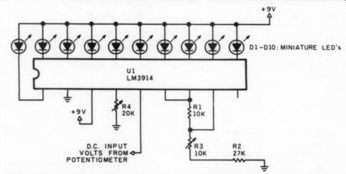 ---------------- ![]() TEST CONDITIONS Vee = 5.0V Temp. = Room Wiper @ Tap 50 Vy =0.5V RMS Normalized (0 dB @ 1 kHz) Test Circuit #6 FIGURE 5: Frequency response and harmonic distortion plots. --------------------- This noise performance and the need to limit voltage swing may not appeal to some. you may prefer to adjust a DC voltage that in turn feeds a DC con trolled gain stage. Many variations of DC gain controllable amplifiers are available, such as the Motorola MC3340 and the National LM1036, as well as designs made with OTAs. I'm certain some TAA readers will have other circuits to share. Further Applications You may find the electronic attenuator's lack of visual feedback is not a problem in some applications, such as fully microprocessor controlled gain. ![]() FIGURE 7: Bar-graph meter may be used to monitor actual wiper position. This works when you use the potentiometer to control a DC voltage. However, a visual indication is always welcome. You can easily include a bar graph meter to monitor the DC voltage (when the potentiometer is controlling an electronic DC attenuator). A simple bar graph, built around the LM3914, is shown in Fig. 7. You should know the a nonzero voltage. DC attenuator's maximum and minimum voltages that adjust maximum and minimum gain. Adjust potentiometers R3 and R4 so the highest LED lights up at maximum gain and the lowest LED stops glowing at minimum gain. When you are using the potentiometer for tone controls, adjust the shining LEDs so they are centered at zero dB gain. The bar-graph IC should be operated in the dot mode to minimize power drain and heat generation. The voltage supply should be at least 3V above the DC control voltage. Circuit applications with a full fledged microprocessor control are virtually limitless. You could build a graphic equalizer that generates pink noise, evaluates the overall room speaker performance and then equalizes the output. Remote volume control would be another positive asset. We've all experienced the frustrating stand and sit situation to adjust volume and find that the response near the amplifier is not the same in our ‘sweet spot.’ With imagination, other parameters may be easily controllable. I hope this short article fuels your imagination. REFERENCES 1. Xicor Data Book, Xicor Inc., 1987, pages 4-1-4-12 and 7-23-7-32. 2. Linear Supplement Data Book, National Semiconductor Inc., 1984. Also see: A MULTI-TONE INTERMODULATION METER, PART II., By Erno Borbely |