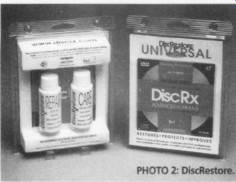 CD Repair Kits Reviewed by Gary A.Galo SkipDoctor CD Scratch and Repair Device. Digital Innovations, LLC, 906 University Place, Evanston, IL 60201, 1-888-SMART-58, E-mail sales@digitalinnovations.com, Web site www.digitalinnovations.com. $34.99. DiscRestore. DiscRestore, 1190 Spruance St., San Jose, CA 95128, (408) 298-9008, FAX (408) 298-0607. $14.95 (enough fluid for 50 uses), $19.95 (100 uses). When Sony and Philips introduced the Compact Disc, consumers were not just assured of "perfect sound forever," but we were also told that the new silver discs were indestructible. Finally, there was an audio storage medium requiring no care whatsoever. Scratches and fingerprints would have no effect whatever on the "perfect sound," since the miracle of digital error correction would replace any missing data caused by mishandling. It wasn't long before music lovers realized that the hype had been grossly overstated (just like the perfect sound of the early discs and players). Error correction can certainly mask minor scuffs and scratches, but beyond a certain point, disc damage will cause discs to skip, distort, or simply not play at all. SkipDoctor and DiscRestore are designed for repairing scratched CDs (Photos 1 and 2). Disc-Restore comes with a bottle of re pair fluid (light tan in color), a bottle of care fluid (clear), blue and white buffing cloths (called Opticloths), and two ultra-fine cushioned polishing sheets. To repair a scratched disc, place the CD on a newspaper or paper towel, label side down. If the entire disc is scratched, the manufacturer suggests pouring about five drops of repair fluid around the disc. Otherwise, just place a drop or two on the scratched area. Then, firmly buff the entire surface of the disc with the blue Opticloth until the tan fluid disappears. ![]() ![]() The manufacturer notes: "You have now created the miracle of DiscRestore." If this process is ineffective- which it may be on a severely damaged disc-use the ultrafine polishing sheets to buff the problem areas of the disc. You first use the coarser of the two sheets (#2), followed by the finer (#1). After successfully repairing the disc, use the clear care fluid, along with the white Opticloth, to buff a damage-resistant finish onto the disc. SkipDoctor is an unusual repair sys tem that involves a large plastic hand cranked buffing tool, consisting of a rotating disc holder and a flexible plastic buffing wheel. The buffing wheel's mild ly abrasive surface resembles the coarser of the two polishing sheets supplied with DiscRestore. To repair a scratched disc, open the lower jaw on SkipDoctor, insert the disc into the CD holder, and spray the disc surface with the supplied resurfacing fluid (which is simply filtered water). Now, close the jaw and turn the hand crank until the CD has completed one counterclockwise revolution. Then, flip the reversibility switch and turn the crank until the disc has made a complete clockwise revolution. Open SkipDoc tor's jaw, remove the disc, and dry it completely with the supplied aqua drying cloth. Finally, place the CD label side down on the folded drying cloth and buff the entire surface, radially, with the felt buffing square. SkipDoctor supplied a CD and a piece of fine steel wool with my press kit and suggested scratching an area on the in side of the disc until the player would no longer index the CD. Scratches on the inside edge of the playing surface dam age the lead-in portion of the disc, including the table of contents area. If the scratches are severe enough, the CD will be unreadable. I was able to successfully restore the damaged disc to playing condition, with no skipping. The SkipDoctor process leaves radial marks on the CD, which the felt buffing square is supposed to remove nearly completely. Even with vigorous buffing, however, the radial marks are clearly visible. In order to render a use less disc playable once again, the sur face of the disc will be made less shiny than it was when it was new. If only a portion of the disc is damaged, it isn't necessary to make a complete revolution with the SkipDoctor. By using the reversibility switch, you can go back and forth over only the damaged por tion of the disc. Ultimate Test I used the steel wool supplied with SkipDoctor to damage another CD, which I then tried to repair with Disc Restore. I found that DiscRestore was just as effective in repairing the dam aged disc as SkipDoctor, and I liked the fact that DiscRestore didn't leave permanent radial markings on the CD. I then decided to give both repair systems the ultimate test. Using a screwdriver blade, I put a wide, deep scratch on two different CDs, rendering both unplayable. I had to be very persistent, but both systems allowed me to at least restore the disc to the point where my CD player would index the disc and begin play back of Track 1. Both discs still exhibited some skipping, which I was unable to correct. SkipDoctor is also marketed as Game Doctor, dvdDoctor, and DataDoctor. All four products are the same-simply targeted toward different markets. The manufacturer claims that the products are equally effective in treating CDs, PlayStation discs, other CD/DVD-based games, DVDs, CD-ROMs, recordable CD Rs, and photo-CDs. DiscRestore makes similar claims for its product, noting that it is "100% effective" on all optical storage media, including CDs, CD-ROMs, Laserdiscs, and DVDs. Both DiscRestore and SkipDoctor are quite effective in repairing discs with mild scratches and abrasions. While a severely damaged disc may be restored to a playable condition, it may still exhibit some skipping no matter how many times you repeat the process. Given a choice between the two, I have a slight preference for the DiscRestore system, since it is easier to work on a specific area of a disc without leaving permanent marks elsewhere on the CD. DiscRestore will be the only choice for repairing 12" video Laserdiscs, which are too large to fit SkipDoctor's mechanis