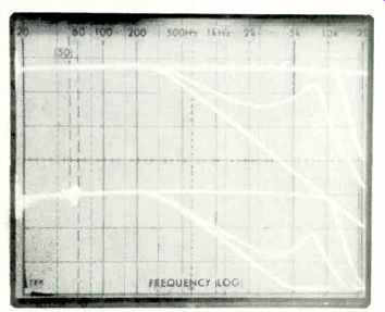 Fig. 2-Greater bandwidth contraction occurs when the "MAX" button is depressed. Each vertical division equals 10 dB.
