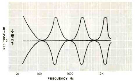 Ranges: 40, 80, 160, 320, 640, 1,280, 2,500, 5000, 10,000, 15,000 and 20.000 Hz. Lift and cut: plus or minus 16 dB, or plus or minus 8 dB. Slope: 12 dB per octave. Input impedance: 100 k ohms. Output Impedance: 200 ohms. Frequency response: plus or minus 0.25 dB. 20 to 20 kHz. Maximum output: 7 volts. Distortion: IM and THD less than 0.1% at 2.5 volts output. Hum and noise: 90 dB. Dimensions: 17 inches wide by 7 inches deep and 5.25” high. Price $450. The only thing equalizers, as a family of equipment, have in common is that they all operate on the frequency response of the signal passing through them. At one extreme we have the garden variety of tone controls which shape the frequency spectrum broadly and coarsely. While on the other extreme there are equalizers which can control a narrow band of just a few Hertz in calibrated decibel steps. Some equalizers give boost as well as loss to the passing signal; others just loss. Some work in one particular region, serving a special purpose, while others operate throughout the audio frequency spectrum with varying degrees of frequency resolution. For sound reproduction, the narrowest band useable is 1/3 octave wide because the 'ear doesn't resolve anything much narrower. The broadest we want are regular tone controls. There are three good reasons and two bad ones for using equalizers: 1. to change the program material; 2. to change the frequency response of the audio system; 3. to compensate for the absorption inequities created by room acoustics; 4. to compensate for loudspeaker deficiencies; and 5. to compensate for hearing loss. Reason No. 1 is a good reason to use equalizers because individual taste as to what constitutes correct or proper balance between musical sounds can now be exercised when desired. While in most cases we prefer to let the recording team do their thing by dictating frequency balance, sometimes things get out of whack by the time their creation gets reduced to disc, tape, or tape cassette, and is about to be played. Reason No. 2 is a good reason because it is so very difficult to obtain flat frequency response in a system, advertising claims to the contrary, notwithstanding. Reason No. 3 is also a good reason because equalizers can eliminate unavoidable imperfections of our listening environment to a large extent. Reason No. 4 is a bad reason and one which is often misunderstood. If a loudspeaker system rolls off at 50 Hz, it means it is incapable of operating below that region. Boosting the input to the loudspeaker below this frequency will distort the sound. If it were not so, all the loudspeaker manufacturers would have to do is reduce the efficiency of the upper frequency range drivers and we would thereby get more bass by driving the loudspeakers harder. It is fair to assume that loudspeaker manufacturers have already considered the limitations of their designs and optimized the frequency response of their product--at least as far as the frequency extremes are concerned. It is possible to boost the extremes somewhat if the loudspeaker has high power handling capability and we don't play it at its loudest. Compensation for the loudspeaker's inaccuracy in the mid-range is also tricky because it can cause ringing and play havoc with its transient response. Finally, Reason No. 5 is a good reason because it we compensate for a known ear deficiency, during listening to music at home, who will compensate the orchestra during listening to live music? After all, to the ear, regardless of deficiency, the live orchestra is the reference. To compensate for this deficiency during playback only, will therefore disorient the listener when he's hearing the real live thing. The use of equalizers is fascinating, but like most good things, fraught with danger. Equalizers need to be used with discretion that comes from learning how to use them. Used well, equalizers can significantly improve the perception by most listeners of reproduced sound. Misused, however, equalizers can ruin the balance beyond recognition, mislead diagnosis of a system malfunction and damage loudspeakers. The SAE Mark Seven Stereo Octave Equalizer, as it is called, is the best stereo program equalizer for home use that we've so far come across. Since the equalization is done in octave bands and both stereo channels are acted upon with one lever, the unit is intended and best used as a program equalizer, explained above as Reason No. 1. It might possibly be used for the second reason, but for the third-not so well. Reason No. 1 is enough, however, since the Mark Seven does this superbly. Having been thoughtfully designed and skillfully assembled, the equalizer is a natural to use and after five minutes of diddling with the smoothly gliding levers, one never wants regular tone controls again. Fig. 2---Showing filter coils on a circuit board mounted behind the front panel. The active electronic circuits and power supply are mounted on boards visible in the rear. There are ten filters with center frequencies one octave apart, starting at 40 Hz, and an eleventh one at 20,000 Hz, which is a half octave above the tenth at 15,000 Hz. 30,000 Hz would have been wasteful. Four push-buttons at the lower right corner control the operating modes. Besides the on/off and bypass controls expected, there is a range-halving control plus a tape monitor switch. See Figure 1. The range selection increases resolution of the control while the tape monitor button replaces the one on the preamp, which must now be engaged if the Mark Seven is connected in the tape loop. An alternate connection is to put it between the preamplifier and the power amplifier. For use with receivers and integrated amplifiers, however, it must go into the tape loop. That is, it receives its input from the receiver's recorder output signal and injects its output into the receiver's tape play or monitor high level input. The four stereo pairs of phono jacks at the equalizer's rear panel facilitate hook-up. 