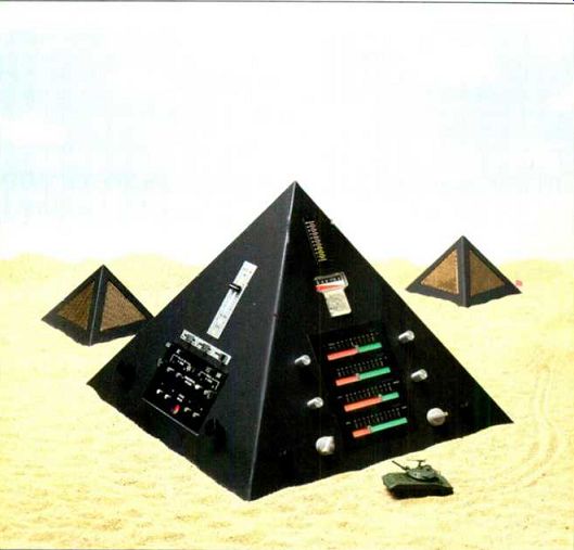 ![]() by NEKNNAML HOP A GREAT SET OF CHEOPS I write this on the train from Cairo, having only a few hours ago said farewell to "Biff" Lirpa, son of the famous audio genius and tangled-string consultant, Prof. I. Lirpa. After months of negotiations, I finally arranged a meeting with Biff to check out the incredible rumors concerning his latest audio experiments. At last, he invited me to visit his Think Tank, located in a Cairo suburb behind a hummus stand. Biff's Think Tank was in reality an old army tank purchased from a surplus bakery in Gaza. From outside, only the famous Lirpa banner flying from the radio antenna suggested anything unusual. But as I greeted Biff and climbed down into the tank, it was clear that the fighting vehicle had been highly modified for other purposes. Glowing electronic displays, rows of switches, a few Ouija boards, and other arcane gear was crammed everywhere in the already crowded space. My eye could just make out Prof. Lirpa's exotic collection of audio equipment, including a subminiature prototype of the Lirpa Compact Dish player (reviewed in the April 1984 issue). In the interests of secrecy, Biff confiscated my camera, as well as my pastrami on white bread with mayo; however, my notebook and pencil remained in my possession. I settled down in the gunner's seat and observed the top of Biff's head as his voice echoed up from the driver's seat below. He explained that the fabulous success of his father's audio products had produced billions in excess cash, and that the family had decided o diversify into areas such as communications, satellites, computers, and he franchising of goldfish-grooming boutiques. Biff had assumed a lot of things, including control of research at his mother's audio-communications corporation, Ma Lirpa. Their familiar slogan, "The louder you talk, the better they'll hear," had already caused the price of their stock on the Baghdad Exchange to catapult tenfold, from 0.01 to 0.1 cents per share. Bill's department had researched several new products, all aimed at sending messages over incredibly vast distances, using acoustic methods to avoid the high cost of wires or audio transmission. Their prototype power amplifier, Big Bertha Lirpa (named after Biff's sister, Gladys), could deliver an acoustic output of 5 million megawatts (rms), thanks to the surplus Three Mile Island nuclear reactor inside The unit comes on 28 flatbed trucks and can be operated anywhere, provided there is a large water source nearby (such as Lake Erie) for cooling purposes. NASA is considering using the amplifier to send acoustic messages to the moon, and Biff demonstrated its awesome output power in Los Angeles last year. In a highly publicized demonstration, he played a concert for folks who had recently died. Following the success of the amplifier, the research team's direction was suddenly altered when Biff began dating Madame Zelda, a palm reader. His psychotherapist, Dr. Lucky (who was coincidentally Zelda's brother), advised Biff to take her advice seriously. Thus a new, crash top-secret project, code-named Crash Top-Secret Project, was initiated. "How much do you know about the pyramidology theory of digital audio?" Biff asked me as he fired up the Think Tank, put it in gear, and headed out of Cairo into the Sahara. I laughed, thinking it was some kind of joke. Instead, he responded with an explanation which grew more incredible by the minute as we rumbled across the desert. A couple of years ago, my father researched the monoliths on Easter Island and discovered that they are, in fact, highly sophisticated hot-dog vending machines, built by an ancient civilization for outdoor rock concerts. However, he could never uncover the sound system these ancients had used. But one day while watching a Star Trek rerun, the one where Spock has a food fight with the guys with inflatable heads, it suddenly occurred to me that any civilization advanced enough to tell the catsup dispenser from the mustard dispenser without making one red and the other yellow, must have designed a digital sound system. The rest is obvious!" My mystified silence caused Biff to explode with exasperation. "Don't you see? Think about the Great Pyramid of Cheops: It has exactly 2,097,152 building blocks, which is 221; in other words, 21 bits per data word. And the angle of the sides is exactly 51°, which is their sampling rate in kilohertz. Wow, what a system! There are 201 stepped tiers of limestone blocks, with an average weight of 2 1/2 tons each, all rising 485 feet over the plateau. Its base is 13 acres square-about seven midtown blocks in New York City. If you took it all apart, you could build a wall 3 feet wide and 10 feet high around France! Damn, I bet it's loud!" I looked at him blankly, still wondering how the conversation had gotten from Easter Island to Egypt, never mind New York and France. "Don't you see?" Biff asked again. "It's the world's first, and biggest, digital sound system! He pointed excitedly through the driver's slit. I peered through the gunner's periscope and there, coming up over the desert horizon-a mountain blocking the red sunset-was the Great Pyramid itself. "Don't you see? It's a stereo! Each of the 2 million blocks is a quantization interval, and when you resonate it at the sampling frequency, it plays, two channels from each of the little pyramids on the sides. Wow, think of the bass! Those ancient Egyptians sure loved to dance!" I stared at the man-made mountain towering ever higher before us, my brain frozen with awe and wonder, and then my jaw dropped. Clearly, Biff Lirpa had unlocked the secret of the pyramids. "Zelda thinks it was probably built by some alien astronauts who couldn't get a permit in their galaxy--I mean, who wants loud music, not to mention all the traffic, in their backyard? So they built it on Earth-got it zoned for recreational use. Easter Island was the concession stand, they probably kept the brewskis cold in Antarctica, and 
