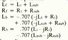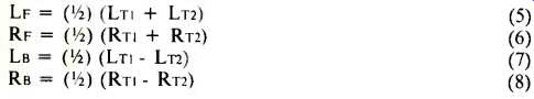 The direct approach for placing four independent audio signals on a two-channel medium is by time-division multiplexing or by using carrier methods. When we began our carrier efforts we were aware of the potential capabilities and pitfalls of this approach, having had an occasion about a decade earlier to master a stereophonic test record, the STR 120, which spanned the frequency range of 10 Hz to 50,000 Hz. (The STR 120 is currently unavailable for sale since all the metal parts for stamping this record have been exhausted.) Since even the most advanced disc cutters do not operate efficiently above 20 kHz, it is necessary to slow down the recording turntables in order to scale down the frequencies; which in turn creates trouble at the bass end, and requires the use of specially lapped styli with miniscule burnishing facets for the shortened wavelengths, which tend to produce a noisier lacquer than conventional styli and to fracture unexpectedly in the middle of a cut. Nevertheless, despite this prior information, it was our contention that carrier methods should not go unexplored and thus our initial work on quadraphonic disc systems at CBS Laboratories was based on the use of carriers. As shown in Fig. 1 each disc channel was provided with a baseband of 20-15,000 Hz, and to this we added a 20 kHz carrier, single-sideband modulated (SSB) from 20,000 to 35,000 Hz. In this manner four independent channels, LT1 and RT1 on the baseband and LT2 and RT2 on the carriers, each with a capacity of 20-15,000 Hz, were obtained. On these we recorded a linear combination or "matrix" of four input signals, LF (Left-Front), RF (Right-Front), LB (Left-Back) and RB (Right Back), in the following manner: ![]() Upon replay and detection, we recover the four left-hand side signals of Equations 1-4. The original four signals can now be obtained as follows: ![]() It should be noted that this "discrete" disc is not naturally discrete but is responsive to a matrix action: "Discreteness" is attempted by signal cancellation, which at no time is ideal. Moreover, we found that the matrix according to Equations (1) and (2) presents an inadequate stereophonic portrayal of the quadraphonic field. Constant power distribution around the quadraphonic circuit results in a concentration of energy in the extreme position of the stereophonic field with diminished center fill, resulting in a ping-pong type presentation; motion between side channels, of course, is lost. Now we … matrixes are available for the baseband wing the SQ matrix later to be ….at this time, however, is that no matter what mixture 'of four original signals is employed with a system which has four independent channels, it is always possible to recover the original signals identically as long as the matrix equations are non-trivial and are linearly independent. If the solution is carried out by means of Cramer's rule', this means that the determinant of coefficients in Equations (1)-(4) must not vanish. We were fully aware, of course, that a 15,000 Hz top end in the system depicted in Fig. 1 would not meet the needs of high-fidelity reproduction, but our view was that we should begin by working within this range and look for further improvement later if the approach proved out. We knew we were already stretching the limits of available technology and any greater demands upon the system simply would compound its difficulties. And the difficulties were many. In addition to the technical recording problems enumerated above, we knew in advance that a linearization process would be required for the baseband and the carrier signals, to minimize distortion. The record player required the use of costly filters to separate the basebands from the carriers, and two detectors were needed, followed by the de-matrixing circuit. Furthermore, previous experiments had alerted us to the fact that even with the costliest of pickups, high frequency response beyond 20 kHz would leave much to be desired.' This situation continues to be prevalent even today as exemplified by the graph in Fig. 2.