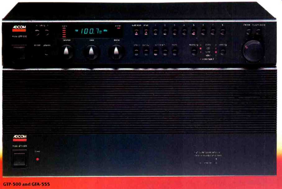Now...from the people who brought you the GFA-555 high-current, high-power amplifier and the remarkable GFP-555 preamplifier...an affordable tuner for the real world of FM broadcast conditions. Unlike all other components, a tuner's performance depends to a great extent on where it happens to be installed-that is, with respect to the nearest FM stations. If you live in a close-in suburban area where a station's signal strength is reasonable and where there are few tall buildings, almost any tuner may do an adequate job. But in a major metropolitan area with tall buildings and many strong stations crowding the FM dial, your tuner mist contend with such problems as multipath distortion and front-end overload. And it should have the ability to separate stations contending for limited dial space. In rural areas where stations are distant and weak, and where signals sometimes arrive at an adjacent or same broadcast frequency from different directions, a tuner requires high sensitivity for adequate signal boost and good capture ratios and selectivity to keep stations from interfering with each other. High performance and affordability. The ability to cope well with conditions in both metropolitan and fringe areas requires sophisticated, expensive circuitry. Unless the ultimate selling price is no object, some compromise in design is usually necessary. The Adcom tuner is a clear exception to this rule. Through the use of recently developed component parts and innovative circuitry, Adcom has produced an excellent and eminently affordable tuner.