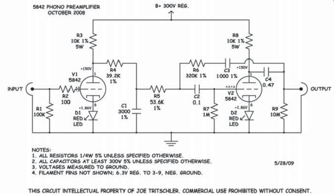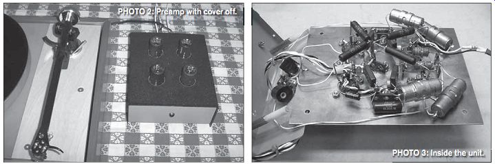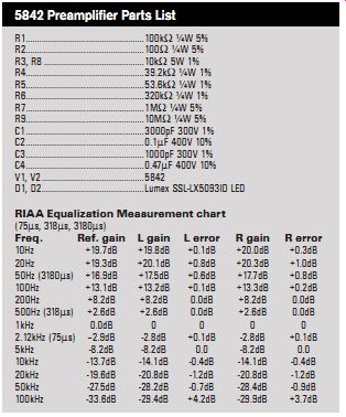 BORBELY RIAA with TUBES REVISITED--The author offers a redesign of this popular phono preamp. By Joe Tritschler Here's a rework of a fan favorite: a phono preamp that includes new features and improvements. Borbely RIAA with Tubes, RevisitedIn the October 2003 audioXpress magazine, I described a stereo phono preamplifier using 5842 triodes and an equalization scheme that was inspired by an article written by Erno Borbely nearly 25 years ago for The Audio Amateur. Several readers built 5842 preamplifiers, including a gentleman in the United Kingdom who called it a "living, breathing instrument," for which I'm very grateful. Since that original article, I've made many changes to the unit and present them here. The preamplifier remains the centerpiece of my system and I use it constantly, often playing several records per day. ![]() PHOTO 1: The completed 5842 phono preamp. THE CIRCUIT Borbely's approach to a phono preamp in 1985 can be described as half-active and half-passive; a linear gain stage up front is followed by a passive low-pass filter for the RIAA 75Ms rolloff and an active shelving equalizer for the 500Hz/50Hz low frequency boost. My preamplifier replaced Borbely's discrete transistor circuitry with two very high-transconductance frame grid tubes, and the result was very good subjective and measured performance. I've elected to keep the basic topology of this circuit intact through all the changes. A common-cathode amplifier stage provides voltage gain at the input, followed by an RC low-pass filter; then a second amplifier stage with anode-follower negative feedback implements the RIAA bass boost courtesy of a series capacitor in the feed back impedance. With only two active devices, it's indeed a very simple circuit. Design revisions encompass the following: a new biasing scheme and operating point, a redesigned low-frequency section that offers higher overall gain, a modification to the extreme high-frequency response of the preamplifier, and special attention paid to equalization accuracy and component technology. The result is a preamplifier that is a major improvement over the original in both objective and subjective terms. ![]() FIGURE 1: Phono preamp circuit. BIASED OPINION Rather than a traditional cathode bias resistor with bypass capacitor, each stage of the updated preamplifier (Fig. 1) uses a Lumex SSL-LX5093ID LED to set its cathode voltage, a technique inspired by Morgan Jones in the third edition of his book Valve Amplifiers (available from Old Colony Sound Lab, www. audioxpress.com). The first time I saw LED bias-circa 1999-in the first stage of a power amplifier, my reaction was to make fun of it. Using a nonlinear device in the very circuit position from which the input signal is derived seemed ridiculous at the time. Mr. Jones made a very convincing argument, however, so I tried it and listened to the difference. It turned out to be a very significant sonic improvement. LED bias has pros and cons. LEDs tend to drop a constant voltage over a fairly wide range of operating current. This means that their dynamic resistance is very low. I extrapolated 137 from the manufacturer's datasheet at the chosen operating point of 15mA and used it in my computations. The significant advantage of this is that a cathode bypass capacitor is no longer needed. The down side is that the constant-voltage behavior more or less constitutes fixed bias, losing the cathode resistor's inherent advantage of providing DC feedback to stabilize the tube's operating point. This is of particular concern with high-transconductance tubes since, by definition, small changes in bias produce large variations in plate current. As it turned out, I did need to plug in a few different combinations of 5842s to find pairs that biased similarly channel to-channel, but the improvement in sound was most worthwhile. Incidentally, there's nothing special about these particular Lumex LEDs; they were simply available locally in surplus. Morgan refers to "cheap red LEDs" in his book, but I tested a few different types and they do differ slightly in voltage (and presumably resistance), and seem to be very consistent within a given part number. My theory is that a cathode bypass capacitor is likely to be much more audible than any power supply bypass capacitor. The reason is that even though the dynamic plate current of a single-ended amplifier stage flows through both of them, any AC voltage developed by the power supply capacitor across its impedance (including nonlinearities and parasitic components) will be attenuated by the amplifier's power supply rejection (which is high in this circuit). Whereas, any nonlinear AC signals appearing across the cathode bypass capacitor are placed right into the input grid-to-cathode signal and amplified. This effect seems most pronounced in high-transconductance stages. Switching to LED bias in this preamplifier brought out reverb tails and other nuances that had previously been missing, probably due to electrolytic capacitor imperfections. Of all the component changes made, this was the most audible, resulting in a major improvement in detail and a clearer, less-fatiguing sound overall. MORE GAIN, PLEASE One complaint with the original 5842 pre amplifier circuit was that it had only about 34dB of gain at 1kHz. This was barely enough for use with a moving-magnet cartridge, provided you were driving a line stage or very sensitive power amplifiers. Because I prefer not to use a line stage at all if I can get away with it, a few more dB overall seemed a worthwhile objective. The original preamplifier set the second-stage mid-band gain to unity, rising to the required +20dB below 50Hz. It occurred to me that if I could set the mid-band gain to exactly 20dB below the open-loop gain of the stage by adjusting the feedback network, then every drop of available gain could be squeezed out of the circuit at low frequencies where m aximum gain is required by the RIAA equalization. T