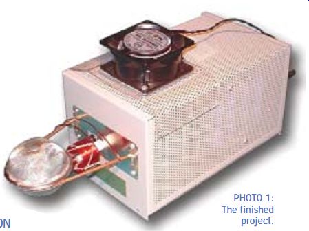 BUILD A PLASMA TWEETER---Here's a hot idea--ion tweeters you can build to reproduce high frequency sound that's clean, clear, and totally non-directional. ------- Generate audio from a massless electric flame to produce perfect transient response and an omnidirectional frequency response. By Colin Joye All dynamic cone, electrostatic, and ribbon tweeters have a small mass associated with their respective sound producing elements. A tremendous amount of work has been done to minimize this moving mass because it is often the limiting factor of how well the tweeter will perform. Another drawback to loudspeakers that use moving elements to produce sound is directionality. Any element that moves to cause sound does so by pushing the airwaves in a specific direction. Some tweeters combat this by using a horn, others by using multiple drivers. In the case of the former, the frequency response is not perfectly uniform over the angle of dispersion, while in the latter, a lobing effect is often unavoidable. Having a uniform frequency response for off-axis angles prevents the listener from being confined to a single "sweet spot," where all of the axes of all of the speakers converge. Of course, if your ears are not equidistant from any pair of sound sources, you will experience a phase shift associated with the different path lengths, but you still want the same frequency response, even off-axis. This project doesn't constrain you to experience only one fixed soundstage, but al lows the soundstage to rotate before your ears as you walk around the speakers, adding to the illusion of "being there." ION TWEETER SOLUTION You can use the laws of diffraction to make the width of the dispersion field wider by decreasing the surface area of the moving element with respect to the wavelength of sound being emitted (Fig. 1). The problem is that, by reducing the surface area, the sound output level is also reduced and the frequency response becomes restricted, so this would be a rather impractical solution to the problem. One clever way to conquer both directionality and moving mass is to use an electric flame. Dr. Siegfried Klein invented the ion tweeter (or plasma tweeter, as it is also known) in the early 1950s. He used a push-pull vacuum tube oscillator to drive a coil at its self-resonant frequency to cause voltages on the order of 30,000V (30kV), which he used to produce corona discharge. One problem that was prevalent in power transmission lines in the 1920s and 1930s was the formation of corona discharge on power lines. When high voltages are present at sharp points or edges, a bluish glow discharge known as corona discharge forms around the sharp point. Corona discharge is a localized ionization of the air that con ducts electricity. Any such gas that con ducts electricity is known as plasma. In power transmission lines, this corona caused the insulation to disintegrate, because corona is a hot glow discharge. Dr. Klein's invention made use of this corona to produce audible sound. He touted it as being able to produce sound with tremendous efficiency (he was ignoring the oscillator itself, which actually draws a lot of power) and as being able to project sound very audibly over large distances (as described in U.S. patent number 2,768,246). In the late 1950s and 1960s, ion tweeters were produced commercially in the USA and Europe under the names Ionovac, Ionofane, and Ionophone (I recently spotted one for sale on eBay.com). These units used a metal horn to focus the sound and facilitate mounting. They used a single 6DQ8 tube to produce the corona and used tubes in the amplification stages. Since then, there have been few ion tweeters produced commercially. The German company Magnat produced a three-way speaker cabinet in the 1980s and used an ion tweeter without the horn to make use of the omni-direction al effect. Acapella, another German company, currently produces very expensive and very high quality speakers that use ion tweeters. This project presents the ion tweeter that I have constructed (Photo 1) and illustrates its theory of operation, construction techniques, feasibility, and some of the observations I've been able to make. I actually got the idea for my first ion tweeter on the web from Ulrich Haumann's webpage, now plasmatweeter.de. After I read how it worked and what it did, I just had to build it. ---ABOUT THE AUTHOR: Colin Joye is a 2002 graduate of Villanova University in Electrical Engineering. He is currently pursuing his PhD in electromagnetics at Massachusetts Institute of Technology. His other interests include music composition, art, and karate.---