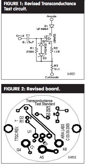 CORRECTION I found an error in my article "The Double-Dipole Subwoofer," which was published in audioXpress, November 2004, p. 18. In Fig. 12, the regulated power supply, the values of resistors R2 and R4 which adjust the output voltage of the voltage regulators, should both be 2k7. George Danavaras Athens, Greece REVISED TEST In response to inquiries about my re cent article ("A Transconductance Tube Tester Test Standard," Feb. '05 __xYz, p. 18), I have made several changes to allow the Transconductance Test Standard to work on higher input (grid signal) voltages, such as on some selected ranges of the Hickok Model 539 series. Measurements on this standard were within ±1% of 1500µS with input signal voltages of up to 7.5V RMS and plate voltages up to 250V DC. This necessitated some modifications to the circuit as shown in Fig. 1. I devised a new circuit board. Due to the power dissipated within this device at higher plate voltages, I've also included additional holes to attach a heatsink with standard 1.0” spacing between pins. I turned the heatsink down on a metal lathe such that the bottom 1.5” fit within a standard 1.25 " O.D., thin wall (0.050” wall thickness) tubing. I then fit the aluminum tube over the octal plug socket and potted using Loctite E-60NC Hysol epoxy potting compound. The outside of the case heated up approximately 30°C after 15 minutes of operation at 200V DC plate voltage. Joel Hatch --------------- Revised Transconductance Test Standard Circuit Board---single-sided (Fig. 2) C1 = 0.15µF P10969 (Panasonic ECQ, 250V metal polyester) [Digi-key] R1 = 250k-ohm (Vishay 1/4W) [Mouser] R2 = 118- ohm (IRC Precision, 0.1%, 1/4W) [Mouser] R3 = 511.2 -ohm (Vishay 1/2W, selected from 511 ohm 1% resistors, 509.5 to 512 ohm are suit able) [Mouser] D1 = UF4004 (Vishay 400V, 1A rectifier) [Mouser] D2, D3 = 1N5245B (Diodes Inc., 15V zener) [Digi-key] U1 = 10M45S (IXYS) [Digi-key] HeatSink = HS239 (Aavid Thermalloy 5300002B02500) [Digi-key] Octal Base socket = Octal Socket Accessory #15 (QQQ Octal Pin Plug) [Angela Instruments] Reference: Outside Circle Dia. = 1.100”, Bar adjacent to hole on diodes indicates cathode. -------------------- ![]() TRANSFORMER SOUND I read Norman Thagard's article about H.V. differential amplifiers in audio-Xpress ("Single-Ended to Differential Mode Made Easy," Dec. '04, p. 8) with great interest. Congratulations on your work. I never thought of connecting so many tube amplifiers in series/parallel to achieve such levels of power. We (at Audio Consulting) are working on differential topologies for solid state and tube amplifiers. Although in both cases, power never exceeds 30W, the sonic advantages of differential topologies are quite obvious (at least to us), especially in these times when the audiophile community calls for single ended circuits. Here are two areas we would like to address: Phase splitters. This is a very critical stage. We have tried many circuits- solid state and tube-and finally use transformers. We still believe that this is sonically the most satisfying way of producing 180° out-of-phase signals. The two out-of-phase signals are identical voltage wise and source impedances are identical, too. The latter is more important to sound performance than we initially may think. Many topologies that are used to pro duce out-of-phase signals use different devices or a number of devices for each phase, which lowers the performance. Of course, the quality of the transformer is absolutely crucial. It happens that transformers are our specialty and we have produced many different types that may be used to achieve 180° out-of phase signals: from low impedance to high impedance, with or without voltage gain, copper wire or silver wire, various magnetics, from regular 0.35mm grain oriented steel to extremely exotic materials in wooden cabinets. Power from power lines to high power amplifiers. Your very original way of using standard tube power amplifiers and its advantages can also be applied to the utility mains. You mentioned that you were having mains voltage down to 107V AC when operating all your power amplifiers, showing the limitations of running 115V AC power lines where power is provided with high value AC currents. In our constant battle for better-sounding mains, we have developed very special power supply and mains isolation transformers that allow for much higher energy transfer from the mains to the amplifiers. Today's mains quality is extremely bad for audio components, and this has nothing to do with sags, HF, or RF. But this is another story. One transformer that we use for Europe and Asia has a 400V AC primary winding that allows it to be connected between two of the three phases we get in our homes. Mains here comes with three 230V AC lines that are out-of-phase by 120° and one "0" connection. Normal connections between the "0" and one of the three 230V AC lines lead to the standard 0-230V AC mains situation we have over in Europe and parts of Asia. Using power between two out of the three 230V AC lines leads to 400V AC (v3 × 230V AC). Using power that way has the big advantage of avoiding the "0" connection, which carries the bigger part of the unwanted "pollution." Thus a 400-230V AC isolation transformer allows for a totally new and isolated 230V AC line feeding your audio system. There is a similar situation in the US. In the US, 230-115V AC transformers work perfectly for homes having access to both 115V AC phases (out-of-phase by 180° here). The situation in the US re ally is a differential topology, by analogy to your way of using power amplifiers. Sound wise, this also leads to big improvements, for reasons that would take another few pages to mention. I really became excited about your work and we would be most happy to provide you with free samples of phase splitter transformers in case you are interested in further experiments. We just need to know the output stage topology and impedance of your preampl