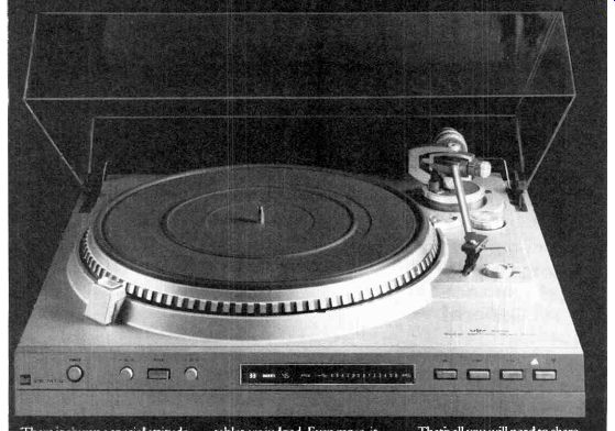 The new 741Q. It could become another Dual classic.![]() There is always a special attitude at Dual about the turntable that is to represent the most advanced thinking and accomplishments of Pugs designers and engineers. The materials, the care in manufacturing, assembly and quality control must exemplify all that has made Dual precision and reliability so highly regarded through out the word. And in every measure of performance. this model must set the standard by--which other fine turn tables arc judged. Even more, it must make a significant contribution to the art of record payback. This year, the quartz PLL direct drive 741Q, with its Ultra Low Mass (ULM) tonearm system, expresses our attitude perfectly If your other components and your record collection warrant consideration of such a turntable, we invite you to visit your audio specialist. And if you have a record that is warped to marginal playability, but too valuable to discard, bring it with you. That's all you will lazed to share our attitude and sense of pride about the Dual 741Q. And if you decide to select something a little short of a classic, be pleased to know that Dual ULM turntables start at less than $150. For complete information, write to: United Audio, 120 So. Columbus Ave., Dept H, M:. Vernon, NY, 10553. USA. [Dual] --------------------- Also see: