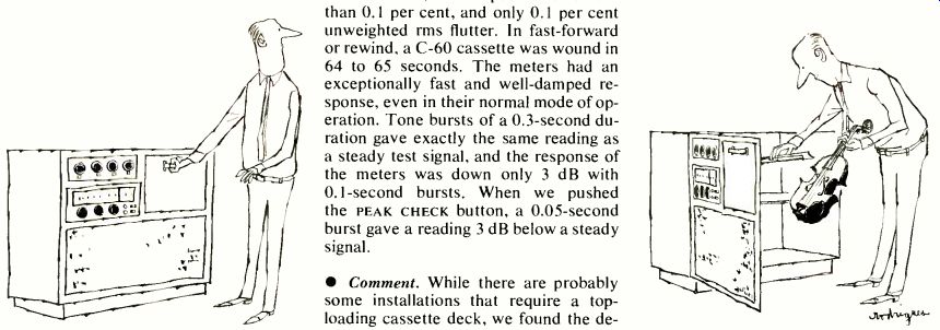 Equipment: NEW PRODUCTS: A roundup of the latest in high-fidelity equipment AUDIO QUESTIONS and ANSWERS: Advice on readers' technical problems, LARRY KLEIN AUDIO BASICS: Shopping for Speakers, RALPH HODGES AUDIO NEWS: Views and comment on recent developments, LARRY KLEIN TAPE HORIZONS: Microphone Types, CRAIG STARK EQUIPMENT TEST REPORTS: Hirsch-Houck Laboratory test results on the: Pioneer SA -9900 integrated stereo amplifier, Pickering XUV/4500Z stereo/CD-4 phono cartridge, Wollensak 4766 stereo cassette deck, and Tannoy Micro TM55DD record player, JULIAN D. HIRSCH SPEAKER MYTHS---Get rid of that suspect informational baggage before you go out shopping, LARRY KLEIN SPEAKER PLACEMENT--You can do it yourself because of a nice acoustical reciprocity, ROY ALLISON RODRIGUES ON SPEAKERS--An expert observer reports from the front, (cartoons and humor) by CHARLES RODRIGUES Reviews: POPULAR DISCS and TAPES -- MEL TORME: A LITTLE OLDER, STILL A PRO: A new recording by the King of the Supper-club Singers, PAUL KRESH; THE STONES--ON DISC AND ON TOUR: A listen (two grab-bag new releases) and a look (the out-of-town opening), STEVE SIMELS CLASSICAL DISCS and TAPES -- THE MINNESOTA ORCHESTRA'S RAVEL The debut release on the Vox label whets the appetite, DAVID HALL; AMERICA'S MUSICAL HERITAGE: An ambitious three-volume entry in the Bicentennial sweepstakes, PAUL KRESH Regulars: EDITORIALLY SPEAKING, WILLIAM ANDERSON BOOKS RECEIVED, LOUISE GOOCH BOUNDAS TECHNICAL TALK, JULIAN D. HIRSCH The Simels Report, STEVE SIMELS GOING ON RECORD, JAMES GOODFRIEND THE OPERA FILE, WILLIAM LIVINGSTONE THE BASIC REPERTOIRE, MARTIN BOOKSPAN CHOOSING SIDES, IRVING KOLODIN ADs: Koss Stereophones (PRO-4AA) Marantz Imperial 8 Speaker System Stanton 681 TPIPLE-E phono cartridge =========== Sept. 1975 Ads: AUDIO DYNAMICS CORPORATION (ADC) phono cartridges Dual turntables Dynaco Empire's 9000GT speaker Empire cartridges EMPIRE SCIENTIFIC CORP. 598-iii turntable HEATHKIT and Heath JENNINGS RESEARCH INC, speakers KENWOOD Stereo Cassette Deck Klipsch and Associates, Inc. Koss Phase/2+2 Quadrafone Lenco L-85 IC transcription turntable Nikko Pioneer Electronics [High Polymer Molecular transducer technology headphones] Scientific Audio Electronics (SAE) Shure Brothers Inc. Technics by Panasonic cassette decks Depts: Chicago Consumer Electronics Show NEW PRODUCTS EQUIPMENT TEST REPORTS: Dynaco PAT-5 Stereo Preamplifier Philips 209S--Electronic Record Player Sherwood S-7010 AM/FM Stereo Receiver Sony ST-4950 AM/FM Stereo Tuner Music and Music Reviews: CLASSICAL DISCS (LP records) and TAPES THE BASIC REPERTOIRE (SIBELIUS' SYMPHONIES) Schoenberg’s “Gurre-Lieder” and Others RECORDINGS OF SPECIAL MERIT -- Best of the Month The Man Who Wrote (the recitatives to) Bizet's Carmen Etc. ![]() ![]()