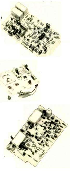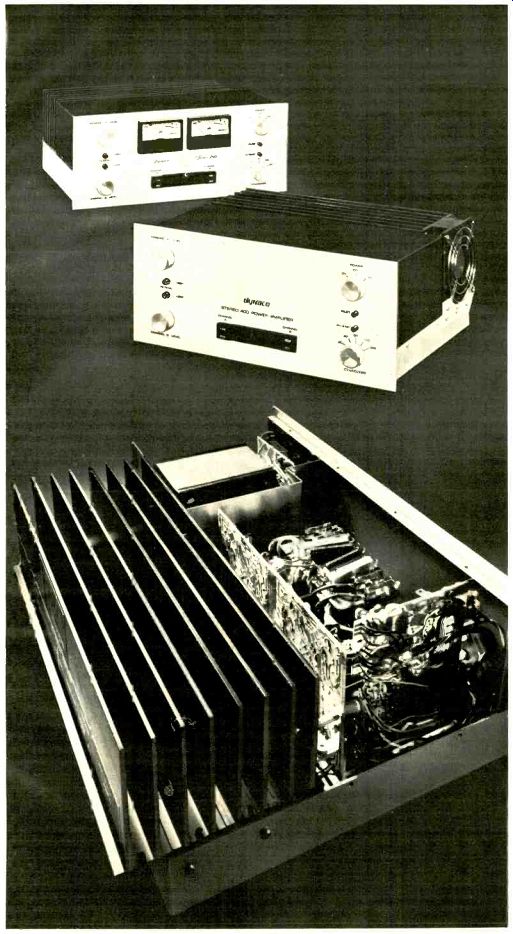 TRANSCRIPTORS (Ireland) Limited is importing the "Vestigal" Tone Arm, a new design employing a vertical pivot assembly located very close to the phono cartridge to reduce effective tone arm mass in the vertical direction as much as possible. Balancing the arm and applying stylus force is accomplished through a string-and-weight system, with the string running the length of the arm from the hinged cartridge shell to the tone-arm upright. There it is attached to a pivoted drum that keeps a constant tension on the string. The amount of tension is determined by an adjustable counterweight that moves along a threaded shaft attached to the drum's circumference. Other adjustments provided for include means to bring the horizontal rotation of the arm parallel to the disc surface, height adjustment, stylus overhang, anti-skating compensation, and a stop to keep the arm from swinging into the la bel area of the disc. The low effective mass of the arm is claimed to result in negligible susceptibility to acoustic feed back or record-warp effects, and it is further claimed that tracking forces as low as 1/10 of a gram may be attained. The arm is of all-metal construction, and uses jewel-bearing pivots throughout. Price: approximately $100. ADC Model WDDS-12 Speaker System AUDIO DYNAMICS CORP. has a new speaker system, the Pritchard WDDS 12 (the initials stand for "wide dispersion/discrete source"). The system is a multidirectional radiator, with the woofer (a 12-inch air-suspension type) facing directly forward and the tweeters, of which there are four, angled slightly to either side on subsections of the enclosure's three-part front panel. Two types of tweeters are used, both having Mylar dome diaphragms, but with diameters of 11/2 and 3/4 inches. One of each type is mounted on either side of the enclosure. Frequency response is 30 to 25,000 Hz ±2 dB, and varies no more than 3 dB from on-axis response over a lateral angle of 120 degrees. Crossover between the woofer and tweeters takes place gradually over the range of 600 to 5,000 Hz. The nominal impedance of the system is 6 ohms. A four-position contour switch offers a choice of flat response, high or mid frequencies reduced by approximately 2 1/2 dB, or both reduced by that amount. The Pritchard system has a sealed enclosure of oiled walnut with a foam grille. Dimensions: 26 x 14 1/2 x 12 inches. Price: $350. An optional pedestal base (shown) finished in matte-black aluminum is $25. Dokorder MK-50 Dolby Cassette Deck A NEW stereo cassette deck has been introduced by Dokorder. The Model M K-50 has Dolby B-Type noise reduction, a tape selector with positions for "normal" and chromium dioxide, and a "Cue & Review" function that permits direct switching from play to fast for ward and rewind (to assist in locating specific points on the tape). Slider-type adjustments are used for setting recording and playback levels; these are separate for each channel. Push-key trans port controls are provided, including pause and eject functions. The micro phone inputs and a stereo headphone jack are recessed into the trim strip on the deck's front edge. Frequency response is given as 30 to 15,000 Hz with standard tape and 30 to 18,000 Hz with chromium dioxide. Signal-to-noise ratio is better than 60 dB with Dolby, 50 dB without; wow and flutter are under 0.1 percent. A C-60 cassette can be fast wound in less than 100 seconds. Dimensions of the deck are 16 x 11 3/4 x 4 inches. Price: $249.95. A wood base is included. Heathkit AD-1013 Four-Channel Audio Scope HEATH'S new four-channel audio scope consists of a 3-inch cathode-ray oscilloscope with inputs for up to four audio channels and for an FM multipath display, plus a self-contained audio-frequency generator to provide test and calibration signals. The multifunction instrument is housed in a cabinet that matches the size and general styling of the Heath AR-1500 receiver. The scope's display modes, which are chosen by an eight-position selector switch, include signal-strength vectors for each of the four channels (which can be selected separately) and the familiar "scrambled-egg" pattern for stereo. For displaying all four channels simultaneously, an internal circuit assigns each of the inputs its own quadrant on the scope screen. The FM multipath display, which is also useful for determining signal strength and channel center, receives its input from tuners and receivers that have the appropriate oscilloscope outputs. (An adaptor kit that adds these jacks to the Heath AR-15 receiver or AJ-15 tuner is available from Heath for $24.95.) The AD-1013 will also function as a normal a.c. scope (with triggered sweep) for inputs connected to the five-way binding posts on the front panel. Sweep range is selected by a four-position decade switch and an associated continuously variable control. The audio-generator section is continuously variable and roughly calibrated at eight important frequencies from 20 to 20,000 Hz. output is held constant within 0.25 dB over the range covered, and the level control affects the signal available from the front- and rear-panel output jacks. The AD-1013 also has trace-position and gain controls (vertical and horizontal) and focus and intensity adjustments. The sensitivity of the oscilloscope is 25 milli volts (peak to peak) percentimeter (1 volt percentimeter in the four-channel display mode). Input impedance is 100,000 ohms, and the frequency response is 5 Hz to 200 kHz ±3 dB. Overall dimensions of the AD-1013 are 18 1 1/2 x 5 1/8 x 13 1/2 inches. It is available only in kit form for $199.95, with a walnut cabinet costing $24.95 additional. ![]() BSR Model FEW-2 Frequency Equalizer THE Metrotec division of BSR is offering a new addition to its line of multi band tone controls. The Model FEW-2 acts in five two-octave bands with center frequencies of 60, 240, 1,000, 3,500, and 10,000 Hz, with a continuously vari able amplitude adjustment range of ±12 dB at each setting. It is a stereo dev