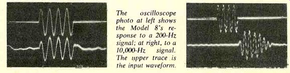 Starting from such an outstanding response at 7 1/2 ips, we could hardly expect a great improvement at 15 ips. Except for a slightly flatter response above 15,000 Hz and some loss of deep bass, the difference between the two speeds was negligible. At 15 ips the overall response was ±1.5 dB from 35 to 24,500 Hz and down 5 dB at 23 and 32,000 Hz. However, at the higher speed there was absolutely no difference between the response curves made at-20 dB and at 0 dB all the way up to our 40,000-Hz upper measurement limit! Measurements with the Maxell and TDK tapes showed that the Dokorder 1140 gave virtually identical frequency response with all three tapes. When the bias adjustment is made using the recommended procedure, and the proper recording equalization is used, this machine can produce superb results with any good-quality tape. A LINE input of 72 millivolts (mV) or a mic input of 0.3 mV was needed for a 0-VU re cording level. The microphone inputs over loaded at 60 mV, which should be a safe value for most recording situations. The playback output depended somewhat on the type of tape used, but with Scotch 212 the maximum output was 1.8 volts from a 0-VU recording at 1,000 Hz. With the meter 'set to 0 VU by means of the playback level control, the out put was 0.79 volt. At 7 1/2 ips, the playback distortion from a 0-VU, 1,000-Hz recording was 1.9 percent, and the 3 percent reference level was obtained at an input of +2 VU. At 15 ips, the 0-VU distortion was 1.6 percent, and a +3- VU input gave 3 percent playback distortion. The unweighted signal-to-noise ratio (S/N), referred to the 3 percent distortion playback-output level, was 55.5 dB at 7 1/2 ips and 54.7 dB at 15 ips. With IEC "A" weighting, these figures improved to 62 and 61.5 dB, respectively. At maximum recording gain the noise level was 4.5 to 5 dB higher through the microphone inputs than through the line inputs (a relatively small increase compared with the performance of many tape recorders we have tested). The tape transport had a combined wow and flutter (unweighted rais) of 0.085 percent at 71/2 ips when playing the Ampex 31326-01 flutter test tape. A combined record-playback flutter measurement actually gave slightly lower readings -- 0.07 percent at 71/2 ips and a very good 0.055 percent at 15 ips. The tape speed was less than 0.25 percent fast, and in the fast-forward or rewind modes a 1,800-foot tape reel was handled in 90 seconds. The meters were somewhat slower than standard VU meters, reaching 60 percent of their steady state readings on 0.3-second tone bursts (the VU standards call for 99 to 101 percent). The PEAK lights were effective in disclosing excessive recording levels, even when the meters read well below 0 VU. Comment. At the time we tested the Dokorder 1140, only a preliminary operating-instruction manual was available, so we had to become familiar with its many features through trial and error. While we may have overlooked a few of its special operating characteristics in the process, we were soon convinced that it is at least as versatile as any four-channel recorder we have seen, and easier to operate than many, in spite of its seemingly formidable control lineup. In view of the limited repertoire of pre recorded four-channel tapes, it is likely that most people will be using the 1140 for live re cording by "laying down" successive tracks based on an initial program track with the intention of mixing down ultimately to a stereo tape. This is the major application for tape recorders with this capability, and one which the 1140 handles in an eminently satisfactory manner. For example, we found absolutely no measurable or audible difference in its response or other characteristics between a playback through the normal playback head and a play back using the recording head in the MULTI-SYNC mode. Since the switching from record to playback functions is handled automatically, it is very convenient to leave the MULTI-SYNC buttons depressed and the MONITOR buttons in their SOURCE positions. In this way the selection of recording or playback modes is governed entirely by the operation of the RECORD buttons and the REC master button. If the machine is put into the recording mode with the channel recording buttons out (disengaged), and if the previously recorded material is monitored through the Multi-Sync heads, one can make a "flying start" recording when adding material to a previously re corded track or inserting new material within the earlier recording. Pressing any of the re cording buttons instantly converts that channel from playback to record status (and re turns it to playback when released) with none of the time-delay error inherent in conventional three-head recorders. We were also pleased to find that the headphone volume, even with 200-ohm phones, was very loud and would probably be sufficient for monitoring during a "live" recording session. This is in contrast to most tape recorders, which barely drive higher-impedance phones to a listenable level. The memory feature worked very smoothly. As the preliminary instruction manual warns, there is a slight error in returning to the "0000" index-counter reading, so that replay actually begins at 0002 or 0003. By making allowance for this, it is possible to repeat or return to the beginning of any desired tape segment with great precision and at considerable speed. We found the tape-loading process to be exceptionally simple, even for someone with more than the normal quota of thumbs. All solenoid-controlled recorders emit an audible "clunk" when their control buttons are operated, and this one is no exception. In any event, none of the acoustic output of the solenoids affects the taped program. All in all, the performance, versatility, and striking physical design of the Dokorder 1140 add up to make it an outstanding value despite its not in considerable price. Onkyo Model 8 Speaker System THE least expensive Onkyo speaker sys tem is the company's 