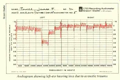 by Alex Burd Sociocusis, in case you didn't know, is the damage to hearing resulting from one's social or leisure activities. Sport shooting, auto racing, and loud-music listening have all been recently condemned as potential hazards to hearing. Rock music in particular has been singled out-usually by those not overly involved in its pleasures-as being an especially insidious source of hearing damage. In May 1974 an article appeared in these pages describing the audio equipment requirements for listening to rock or classical music. The necessity of achieving realistic volume levels together with a dynamic range adequate to convey the music's impact and excitement were felt to be important characteristics in the selection of suit able equipment, and it was reported that stage-monitor speakers that can produce a level of 130 dB at the per former's ears are accepted as "loud enough," while levels of "only" 105 to 110 dB are required for discos. Such sound levels are apparently far in ex cess of the noise levels permitted in industry by current Occupational Safety and Health Act standards (see accompanying box "Noise and the Law") and would appear to portend the coming Day of the Deafened Disco Dancer. In England, at least, concerned local authorities have reacted by proposing various legal restrictions on permissible public sound levels. Yet some experts on hearing damage seem unconcerned. Such disagreement, explicit or implied, leaves the question of greatest concern effectively unanswered: Is there a real risk? Ears and Hearing To understand the problem, you have to know something about the hearing process itself. The ears are a remarkably efficient pair of transducers for converting complex air-pressure variations into electrical signals, which are then interpreted by the brain as sounds. Each ear includes an ear drum which is set into vibration by sound waves and a mechanical coupling sys tem of three bones that transfers the drum movement into a fluid-filled chamber called the cochlea. Within the cochlea there is a membrane (Basilar) which is set in motion by the pressure variations in this fluid. Myriad nerve fibers then detect the minute motions of this membrane and feed the information, in the form of electrical pulses (not an audio waveform), to the brain. At its most sensitive, this system can detect pressure variations that are little greater than the random movements of air molecules. At the other extreme, it can withstand sound pressures that are one million times as great, enough to produce a physical sensation of pain in the ear. Pressures in the range of 10 million times greater will inflict irreversible damage on the ears' internal sensors or on the moving parts. This range of sensitivity, encompassing the entire range of natural noises, is the result of the millions of years of evolutionary development that permitted primitive man to detect the quietest footfall of a predator while at the same time sparing him auditory overload from the noise of a thunderstorm or a large waterfall. The sensitivity of the ear varies considerably with frequency, being most sensitive in the mid-range between 1,000 and 7,000 Hz. The level of sound at this frequency that can just be detected by a person with good hearing is taken as the base line (0 decibels) from which sound-pressure levels are measured. A curve joining values of the pressure that can just be detected at different frequencies is known as the threshold of hearing, and this threshold is important for audiometry, the science of hearing measurement. IT has been known for many years that sound levels which may not be instantaneously damaging can nevertheless produce a gradual deterioration of the hearing faculty. Boiler making, for ex ample, has traditionally been regarded as an occupation that would render those working in it increasingly deaf throughout their working lives. Many other industries, such as weaving or shipbuilding, have similar reputations. Industrial studies have shown that people whose working environment ex poses them to sound levels of 90 dBA or more will suffer a gradual raising of their threshold of hearing. Among audiologists, this is referred to as "thresh old shift." A person who is immersed in such, a sound level for all his working life stands a fair chance of being partially deaf by the time of retirement. Of course, the picture is not that clear cut-all of us lose some of our hearing acuity with advancing years while, at the other extreme, some people show a remarkable resistance to hearing dam age-but statistically, the observations are valid. ![]() -------- Andre Gill's nineteenth-century caricature suggested that redesign of the ear might be necessary to accommodate Wagner's music. The music sound levels of up to 130 dB mentioned earlier certainly seem to point to the existence of a real hazard. Of course it is important to keep in mind that sound levels are usually not continuous at the quoted figures (music would be incredibly monotonous if they were); the numbers merely indicate momentary peaks. How, then, can we assess the possible hazard that may result from listening to loud music? It is accepted by most authorities that it is the total energy absorbed by the ear that affects the hearing system. Two factors contribute to this energy. The first is the equivalent continuous sound level, or Leq. The Leq is that sound level which, if it were present continuously, would contain the same total energy as the noise (or music) being considered. In other words, a five minute noise that measures 90 dB SPL has the same energy content as a noise that measures 93 dB for 2 1/2 minutes, or 87 dB for 10 minutes. In the case of music, of course, where the level varies constantly, the measurement and/or calculation is somewhat more complicated. The second factor is the duration of the exposure in terms of hours, weeks, and years. These two factors, taken together, allow us to calculate the "noise immission level"