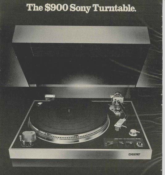 It would be a shame. People responding to something because it costs $900. Not because it's worth $900. People captivated by price, not performance. We at Sony don't want anyone spending good money for a great turntable for a bad reason like an impressive price tag. Especially because there's so much technology in the PS-8750 for you to fall back on. After you spring for the $900. So before you spend a lot of money on us, spend at least a little time with us. Total speed accuracy is our speed. Speed accuracy can be a problem for turntables because the stylus continually puts pressure on the record (and, in turn, on our engineers.) In fact, as little as one gram of stylus pressure can cause a slow down in record speed. A slow-down that is particularly noticeable in loud passages. Up till now, most good turn tables achieved accuracy with a direct drive motor and a servo-system to control speed variations. It was fine for most people. And it still is. But for those with more elegantly attuned hearing, it's just not good enough. That's because the servo-system will not serve when it comes to small, low-frequency speed variations. It is not sensitive enough, and the result is there to be heard- if you have the discernment to hear it. To get around this, Sony took the conventional servo-system and revolutionized it by adding a quartz reference and a phase lock circuitry. That mouthful is really easy to digest. The stable quartz generator emits a constant frequency. Any variations in speed monitored by the magnetic head are converted to changes in the phase of the signal. This is, then compared against the quartz generator's phase signal. If they do not match, our Xtal-Lock correct the speed variation instantly. A conventional servo-system has to wait for the error to appear as a change in frequency, and then it takes time to correct it. Sony can make the corrections 10 times faster. And within one cycle. All because Sony uses the phase difference as a source of information on speed error, rather than using the angular velocity. Chart A dramatically illustrates the dramatic difference. Cartridge sold separately. ----------- Why our tone-arm costs an arm and a leg. After conquering the drive system, Sony sped along to the tone-arm. The problem: constructing a light, strong tone-arm that has a Now resonance quality. A high resonance quality means the tone-arm vibrates-performing a duet with whatever record is playing. Sony wrestled with the arm problem and came up with a different material: a carbon fiber of enormous strength and equally enormous lightness. Moreover, it has a much smaller resonance peak than the aluminum alloy commonly used. (See Chart B, where the difference is demonstrated:) The carbon fiber worked so well that it was even incorporated into the head shell of the PS-8750. But Sony didn't stop at the tonearm's construction. Next came the actual operation of it. Mast turntables have one motor, operating both the drive system and the return mechanism. Meaning that the turntable is linked to the tone-arm. And very often, this linkage produces a drag on the arm. The PS-8750, however, proves that two motors are better than one. The motor that runs the tone-arm is totally isolated from the other motor that runs the turntable. This eliminates the drag, particularly the drag at the very end of the record. This drag is really a drag, because the return mechanism is preparing to activate itself, and the friction is therefore increased. Sony further innovates by designing pick-up and return cues that are optically activated. Like the doors in a supermarket, if you will. With the PS-8750, you get the best of the direct drive manual and the best of the semi-automatic. With none of the worst of either. Does your turntable give you bad vibrations? The same sound waves that travel from your speakers to your ears also travel to your turntable. This transference excites the equipment. Becoming acoustic feedback, or IM distortion. And the louder you play your record, the more of it you get. There's cabinet resonance. Caused by sound waves. ![]() And there's something called record resonance. Caused by the friction of the stylus in the groove of a warped record. Sony, however, deals resonance a resounding blow. We have built the PS-8750's turntable base of an inorganic material that is acoustically dead. We have also undercoated the platter with an absorbing material that prevents it from transferring any bad vibrations to the good vibrations on the record. And we cut down on record resonance by pumping a silicone damping material into the record mat itself. By having contact with the entire record surface, it offers more support. Not for people who want the latest. But the greatest. The PS-8750 represents a tonnage of innovation and a couple of real breakthroughs. It is not for those who want to spend $900 so they can say they spent it. It is for those who want to spend $900 so they can hear they spent it.