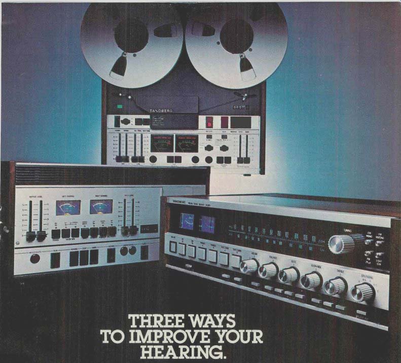 NEW TANDBERG TCD-330. "The world's most sophisticated cassette tape recorder Three heads for tape/ source monitoring. Three motors for reliability. Dual capstan for lasting stability. Dolby. Other features include servo spooling. FM Dolby listening. Memory. Dual peak-reading meters for recording and replay. MPX filter switch. Electronic logic control with 8 ICs. Front stereo head phone jack. Adjustable azimuth. And more. NEW TANDBERG 10XD. The world's first and only 10 1/2" reel tape recorder that operates at 15 ips and combines Tandberg's unique Cross-Field recording technique with the world famous Dolby B system. Result: the 10XD completely eliminates audible tape hiss. Other features: 3 speeds, 15, 7 1/2, 3 3/4 ips. 3 motors; Hall-elect capstan motor. 3 heads; plus separate bias lead. Electronic servo control. Electronic logic mode controls. And more. NEW TANDBERG TR-2075. Here's an ingenious combination. A highly sensitive tuner and pre-amp with an extremely powerful amplifier-all on one chassis. Result: a compact instrument that puts out brilliant performance. Features include an exclusive toroidal transformer that eliminates electronics-ray fields. Electronic tuning. Noiseless push button diode switching, 2 phono inputs. 2 tape inputs/outputs. And more. For a complete demonstration of these remarkable new instruments, see your Tandberg dealer. For a color catalog full of facts and figures, write to us. It's worth $1.50-but we'll send you a copy absolutely free! Tandberg of America, Inc., Labriola Court, Armonk, New york 10504 . Allen P-ingle Ltd., Ontario, Canada. Dolby is a trademark of Dolby Laboratories, Inc. TANDBERG ================Also see: AUDIO BASICS: The Greater Good