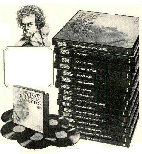 Experience the genius of the "great musician of all time"--as you may never have experienced it before. The Definitive Beethoven Collection As your introduction to THE BEETHOVEN BICENTENNIAL SERIES listen to the first 6 symphonies for 10 days free! Over the years there have been many record albums devoted to various works of the immortal Ludwig van Beethoven. But there has never been a complete collection of all his works. That is why TIME-LIFE RECORDS assembled this magnificent collection in 17 volumes that contain every important work the master ever wrote-even some rare vocal pieces never before available! It's the BEETHOVEN BICENTENNIAL COLLECTION, recorded by the famous Deutsche Grammophon Company of Germany. ![]() This feast of Beethoven is performed by such world-renowned artists as Conductor Herbert von Karajan, supreme interpreter of Beethoven's symphonic works; the great violinist Yehudi Menuhin; opera's greatest dramatic soprano, Birgit Nilsson; Wilhelm Kempff, dean of Continental pianists; silken-toned cellist Pierre Fournier; Britain's brilliant Amadeus Quartet; and the Berlin Phil harmonic Orchestra. 10-day free audition: To introduce you to this incomparable collection we invite you to audition Volume 1, the first six symphonies plus the popular Leonore Overture No. 3, for 10 days FREE. These selections were performed by the renowned Berlin Philharmonic Orchestra under the direction of Herbert von Karajan. Highlighted in Volume 1 are: SYMPHONY NO. 3 in E Flat Major-the "Eroica." SYMPHONY NO. 5 in C Minor-The opening is probably Beethoven's most well known theme. SYMPHONY NO. 6 in F Major-the "Pastoral." Only the beginning: If you decide to keep the five records of Volume 1 for the low price of $19.95 plus shipping and handling, you become entitled, as a subscriber, to audition approximately every other month, future albums in this fantastic 17-volume Beethoven collection for the same low price. Some of the magnificent works contained in future volumes are: The 9th Symphony--a revolutionary work in that it was the first choral symphony ever composed. MISSA SOLEMNIS--An exhilarating synthesis of symphony, opera and church music. EGMONT--the complete incidental music to the heroic drama by Goethe. The 16 Quartets--showing Beethoven's evolution from the classical style of Haydn and Mozart to the highly original and exciting style of the last five quartets. No risk or obligation: To receive Volume 1 for 10-day free audition, return the post paid card. If you decide to keep it, we will include, free, the giant book on Beethoven described at right. You are under no obligation to purchase any minimum number of volumes and you may cancel your subscription at any time. Mail the attached card or use the coupon at right. Beethoven's achievements are a reflection of the man himself, for his music is like a diary into which he poured his life, his desires, his regrets, his furies, his melancholies, and his (eves. Beethoven was at constant odes with his society--a society steeped in a stormy world of revolution. He transposed his own personal struggle to the scale of the whole human race, and dreamed of bringing to it joy and universal brotherhood. PLUS a FREE Beethoven Volume (published at $2950) This huge, handsome commemorative volume-now out of print covers the master and his work in rich detail. Includes much material never available to the public be fore. 267 pages, 269 illustrations in color, and black and white music scores, paintings, drawings, manuscripts, etc. TIME-LIFE RECORDS TIME & LIFE BUILDING, Chicago, Ill. 60611. Yes, I would like to examine the first album of the Beethoven Bicentennial Collection. Please send it to me--together with my free $29.50 Beethoven book--for 10 days' free examination and enter my subscription to the Beethoven Bicentennial Collector. If I decide to keep the first album, I will pay $19.95 plus shipping and handling. I then will receive future albums in the Beethoven Bicentennial Collection, shipped an album at a time approximately every other month. Each is $19.95 plus shipping and hand ling and comes on a 10-day free-examination basis. There is no minimum number of albums that I must buy, and I may cancel my subscription at any time simply by notifying you. If I do not choose to keep the first album, I will return the album and the book within 10 days, my subscription will be canceled and I will not be under any further obligation. Name Address City Apt. No State Zip (or Prov.) (or Code) +++++++ Now! Preview the outstanding DG recording of the complete FOUR SYMPHONIES of BRAHMS superbly conducted by CLAUDIO ABBADO.![]() ALL 4 RECORDS FOR THE PRICE OF ONE plus the opportunity to audition important classical recordings especially recommended by the Carnegie Hall Selection Committee. BRAHMS' Four Symphonies are the most magnificent since Beethoven's! The extraordinary recording of them from Deutsche Grammophon offers Claudio Abbado conducting four of the world's greatest orchestras. You are invited to preview this album for ten days, without charge or obligation, and all you need do is mail the coupon on this page. You may keep all four records for the price of only one-yes, more than 78% oft the list price at which they are sold in stores! The Carnegie Hall Selection Commit tee's report accompanying the album points out why these performances were singled out for their recommendation: freshly conceived, deeply felt interpretations by young Claudio Abbado, Italy's foremost present-day conductor... the unprecedented opportunity for you to enjoy and compare four orchestras un surpassed in precision, responsiveness and tonal splendor--the Vienna Philharmonic, Berlin Philharmonic, Dresden State Orchestra and London Symphony ...plus Deutsche Grammophon's in credibly lifelike sound. The four stereo records themselves are superior, silent-surfaced European pressings, manufactured to highest quality control standards, and come in a handsome hinged case wi
