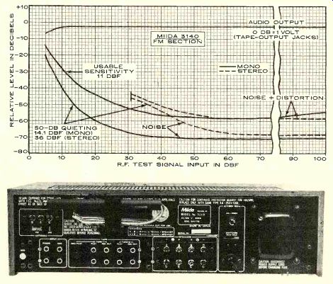 EQUIPMENT TEST REPORTS (Jul. 1977) : Hirsch -Houck Laboratory test results on the Rotel RT-1024 AM/ FM stereo tuner, Dual C919 cassette deck, TSI Models 110 and 120 speaker systems, Ortofon MC20 stereo phono cartridge and MCA-76 pre-preamplifier, and the Miida 3140 AM/FM stereo receiver. JULIAN D. HIRSCH, Hirsch-Houck Laboratories ------- Rotel RT-1024 AM/FM Stereo TunerROTEL'S line of deluxe audio components (including the RA-1412 integrated amplifier reviewed in STEREO REVIEW in February 1976) has been joined by a matching AM/FM stereo tuner with built-in Dolby de coding circuits. Like. its companions, the Rotel RT-1024 is large and distinctively styled. The front panel, in satin-finish aluminum, has sturdy carrying handles and is slotted for mounting in a standard 19-inch rack. The dial scale and meters are behind a cutout on a heavy subpanel, which also contains the un usually large tuning knob. ![]() Unlike most tuners, which have one or two meters, the RT-1024 has a complement of four which together occupy as much space as the dial scale above them. Two are the conventional FM channel-center indicator and the relative-signal-strength indicator for AM and FM. Another meter is used to set Dolby levels for an external recorder, using the 400-Hz calibration oscillator built into the RT-1024. It can be switched to read levels in either channel. (The tuner's Dolby circuits can be switched to provide either encoding or decoding functions for an external tape deck, as well as being used in their normal role for reception of Dolbyized FM broadcasts.) The fourth meter is an FM-multipath indicator whose deflection is proportional to the amount of multipath distortion in the received signal. The operating controls of the Rotel RT-1024 include a pushbutton power switch and a headphone jack driven by a separate amplifier with its own volume control. One lever switch blends the high frequencies for noise reduction on weak stereo signals, and another switches the multipath meter on or off. There is a front-panel output-level knob controlling the rear outputs (in addition, there is another pair of audio outputs operating at a fixed level). The Dolby controls form a functionally separate group that includes the meter switch, a PLAY/REC function switch, and concentric knobs for calibration of the two channels. (Rotel will supply Dolby-level calibration cassettes with future RT-1024's.) A switch turns the Dolby system on for either external or FM use, simultaneously changing the de-emphasis of the tuner to the 25 microseconds required by the Dolby system. A three-position switch selects muting thresholds of 10 or 30 microvolts or turns off the muting circuit entirely. The last switch selects AM, FM with automatic stereo/mono switching, stereo FM only, and mono FM. Red LED lights between the meters glow to show stereo reception and to indicate when the Dolby circuit is turned on. In the rear of the Rotel RT-1024 are the fixed and variable audio-output jacks, input and output jacks for the Dolby system, a slide switch to turn on the 400-Hz Dolby calibration oscillator when matching the system to an external tape deck, and an FM 4-cit DETECTOR output jack for use with a possible future discrete four-channel FM decoder. There are insulated spring clips for the antenna connections and a hinged ferrite-rod AM antenna. The single a.c. outlet is controlled by the tuner's power switch. The performance specifications of the Rotel RT-1024 are as impressive as its appearance and control features. The FM front-end has a five-gang tuning capacitor, giving it an image-rejection specification of 110 dB. Other specs include 9.3-dBf (1.6 microvolts) IHF sensitivity in mono, a 1-dB capture ratio, and 80-dB alternate-channel selectivity. The PLL multiplex circuit is rated to provide 47 dB of stereo separation at 1,000 Hz and at least 35 dB from 30 to 15,000 Hz. Distortion is claimed to be less than 0.2 percent in mono and 0.3 percent in stereo, with signal-to-noise ratio (S/N) figures of 75 and 70 dB, respectively. The Rotel RT-1024 is 19 inches wide, 7 inches high, and 16 inches deep; it weighs 24.2 pounds. Price: $569.95. Laboratory Measurements. The FM tuner section of the RT-1024 actually surpassed its rated IHF sensitivity specification, measuring an impressive 8.1 dBf or 1.4 microvolts (uV) in mono and 22 dBf (7 uV) in stereo, the latter being the automatic stereo/mono switching threshold. The 50-dB quieting sensitivity in mono was 9.3 dBf (1.6 uV) with 1.4 percent distortion; in stereo it was 34.5 dBf (29.2 uV) with 0.47 percent distortion. The S/N measurements were 69 dB in mono and 65.5 dB in stereo, and the respective distortion levels were 0.125 and 0.2 percent. The stereo distortion with L-R channel modulation was 0.63 percent at 100 Hz, 0.2 percent at 1,000 Hz, and 0.16 percent at 6,000 Hz. The capture ratio was 1.6 dB at a 45-dBf (100 uV) input and 1.4 dB at 65 dBf (1,000 uV). AM rejection at these levels was 72 and 66 dB. Image rejection was not measurable, exceeding the 110-dB range of our instruments. The alternate-channel selectivity was 67 dB and adjacent-channel selectivity was 4.1 dB. The FM muting threshold in the 10- and 30-uV switch positions was 12 and 40 µV. The tuner hum output was-65 dB, and the 19-kHz pilot carrier appearing at the audio outputs was 61 dB below the 100 percent modulation level. The fixed audio output was 0.8 volt at 100 percent modulation, and the variable output could be adjusted up to 1.44 volts. The frequency response through the fixed outputs was ±0.7 dB from 50 to 15,000 Hz, down 1.9 dB at 30 Hz. Through the variable outputs the response was down 2.3 dB at 15,000 Hz and 3.2 dB at 30 Hz. Stereo channel separation was between 40 and 42.5 dB from 350 to 5,000 Hz, falling to 22 dB at 30 Hz and 34 dB at 15,000 Hz. The frequency response of the AM tuner section was unusually limited at the low-frequency end, being down 6 dB at 220 Hz and at 3,800 Hz. ![]() -------- The RT-10