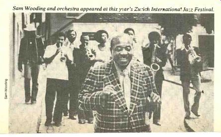 ------------- Alberta Hunter was a tireless- entertainer at World War II war-bond rallies. ---------- Sam Wooding and orchestra appeared at this year's Zurich International Jazz Festival. ----- Sam Wooding and his Original Chocolate Kiddies Orchestra in Harrburg in 1925. AFTER the breakup of the Chocolate Kiddies, Wooding decided to stay in Europe with his band. They played all over the Continent, visited Moscow and Leningrad (decades before Benny Goodman's allegedly pioneering trip there in the Sixties), and even took a "side trip" to South America via Africa. In 1925, the band made a series of recordings for Vox in Berlin (thus becoming the first black American band to record outside of the U.S.), followed, in 1926, by a series for the German Polydor label, ten imaginative sides recorded for Parlophone in Barcelona in 1929, and numerous Paris sesions for Patine and Polydor. While Wooding spread his jazz to different parts of the world, Alberta Hunter, still vacationing in Monte Carlo, received a telegram from Noble Sissle suggesting that she make a stop over in London to perform at a much-heralded, star-studded, flood-relief benefit. "I jumped at the chance," she recalls, "because I had wanted to per form in England but couldn't get the required work permit." As luck would have it, the benefit was attended by Os car Hammerstein II and Jerome Kern, who obviously liked what they heard. "I was staying with Marion Anderson, and Mr. Hammerstein called me there the next day, asking me to come down to the Drury Lane Theatre. Next thing I knew I had the part of Queenie in the London production of Show Boat, which had a wonderful cast, including Paul Robeson, Edith Day, and Sir Cedric Hardwicke."