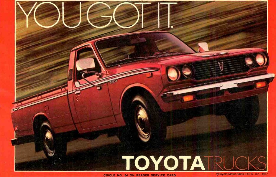 Toyota Trucks![]() The 1978 Toyota SR-5 Long Bed Sport Truck. Part sports car, part cart, because Toyota Sport Trucks are hot two-seaters with loads of luggage space. For driving Lin, Toyota's way out ahead with the right combination choice, performance, comfort, economy, and reliability. The Car Part. Accommodations for two. Hi-back bucket seats. Carpeting. AM-FM radio. Tinted glass. Floor console. Standard touches that point up some of the car quality inside an SR-5 AP5 WAY CITY The Sports Part. The biggest standard engine in its class-2.2 liters-with loads of torque. With the standard 5-speed overdrive transmission you get economy, too. In EPA tests the SR-5 was rated at 31 highway 23 city. These EPA ratings are estimates. Your mileage will vary depending on your driving habits and your truck's condition and equipment. California EPA ratings will be lower The Cart Part. A bed over seven feet long that mauls up to an 1100 pound payload. That's a big trunk for whatever you want to cart around. he Smart Part. A visit to a Toyota truck stop. The SR-5 Long Bed Sport Truck s one of six Toyota models-more than anyone else. Last, but not least, we say, "If you can find than a Toyota... buy it." THAT NEW BLACK MAGIC. TEAC ![]() So it's got an expensive new look that separates it from every deck in its class. Nice. But is that reason enough to call it magic? No. But this is: generally speaking, over a quarter century of TEAC engineering is wrapped up in the A-103. Specifically speaking, the A-103 boasts an innovative design that re places a maze of wires and circuit boards with a single circuit board. That's one reason. When you press the Eject button, your cassette doesn't pop out at you like a de ranged toaster. It's cushioned, and works slowly and smoothly for longer deck life. That's two reasons. Built-in Dolby circuitry High Density Fermaflux head, frequency-generated servo-controlled DC motor, separate level controls, wide dynamic range, and switchable bias/equalization. Reasons three through eight. But how do we offer all these things (and more) in a deck that costs as little as the A-103? That's the real magic! *Dolby is a registered trademark of Dolby Laboratories, Inc. TEAC 1977 Si-LCIFICATIONS (conservatively rated) Signal-to-Noise Ratio: 50.-LB (without Dolby 55 dB (with Dolby at 1 kHz) Frequency Response: 30-_4, 000Hz (CrO2/FeCr) 30-..1,000Hz ( Normal, Wow & Flutter: 0.10% (NAB Weighted) T E AC First. Because they last. TEAC Corp.. of America 7733 Telegraph Road Montebello California 90640 Technics introduces three ways to achieve the one ideal: Waveform fidelity ![]() To achieve waveform fidelity is an achievement in itself. But how Technics audio engineers accomplished it is an even greater achievement. Like the unprecedented use of two automatically switchable IF bands in the ST-9030 FM tuner. A narrow band for extra-sharp selectivity. And a wide band for extra-high S/N and extra-low distortion. But List as incredible is a pilot-cancel circuit which Technics invented for optimum high-end response. Even the basic tuning function in the ST-9030 is unique. Like an 8-ganged tuning capacitor for outstanding reception. The engineering in the SU-9070 DC pre-amp is similarly unique. There's a built-in moving coil pre-amp with-157 dBV noise voltage. A moving magnet pre-amp with an extremely high S/N of 100 dt3 (10 mV input). Direct-coupled circuitry to keep distortion at a minimum of 0.003% (rated THD). What's more, the SU-9070 has inputs for three tape decks. Finally there's Technics SE-9060 amp. It's DC like our pre-amp. Has a frequency response of 0 130 kHz ( + 0,-1 dB). And a strapped- circuit for more than double the power in a multi-amp system. Compare specifications and prices. And you'll realize there's no comparison for Technics waveform fidelity. SE-9060. POWER OUTPUT: 70 watts per channel (stereo), 180 watts (mono) min. RMS into 8 ohms from 20 Hz to 20 kHz with no more-bon 0.02% to-al harmonic distortion. S/N: 120 dB (IHF A). Technics. A rare combination of audio technology. A new standard of audio excellence. Technics Professional Series by Panasonic