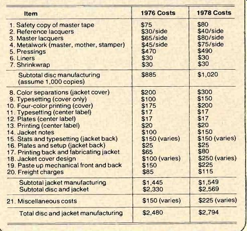 The second time around we instruct ed the cutting engineer to space the grooves out more to reduce the risk of groove echo (but also increasing the risk of running out of recording space on loud, long pieces). We had the master lacquer plated that same evening (and plated slowly), which eliminated almost all of the problems. THEN it was off to the pressing plant, where we found that there are about two zillion additional things that can go wrong. Unless you own your own plant, you are pretty much at the mercy of the one you are dealing with. We found, for example, that the slower the molding cycle, the better-to a certain extent-the pressing, for a slow cycle gives the vinyl a better chance to settle down properly into the negative grooves of the stamper. However, the slower the molding process, the fewer the records manufactured per hour and the less money everyone makes. This provides quite a substantial motivation for the process to be speeded up-with the inevitable effects on quality. Which brings us to one of the sorest, if not the sorest, topics in the annals of record production: Economics. With out exception, every step of the process--from the moment--the orchestra begins to play until the time the consumer places his stylus on the record is controlled by the almighty dollar. In the original recording session, the producer sees the minutes ticking away (on the musicians' union scale) and is anxious to get the session over as quickly and efficiently as possible un less he has an unlimited budget (I don't know many people who do). Retakes sometimes in multiples--are always necessary, and occasionally certain errors ("clams") are left in and the engineers are expected to do their magic with the splicing block later to "correct" or polish them up. From that point on, it's an unending rush to meet deadlines and budgets. Rushing often means carelessness, and cutting corners to meet cost requirements usually leads to disaster. You simply cannot cut corners and still expect a superior product. The disc-cutting facility naturally wants to handle as many master lacquers as possible in the shortest period of time and still maintain enough quality to satisfy-maybe I should say "pacify"--their customers. Various technical procedures and compromises are routinely used to prevent any possibility of overcutting, or "lifts," on the master lacquer and to get more time on the disc. One additional problem is that of lacquer quality. Some of the lacquer "blanks used for cutting will be good, others not so good. A certain amount of quality control (usually visual inspection) is exercised here by the cut ting facility but, beyond that, most people do not or can not take the extra time and care needed for real quality assurance. It is indeed difficult to do much else at this stage in the production operation, for if you play what you've just cut to check it, the playing will ruin it too. What's the solution? One way we found to evaluate lacquer quality is to cut unmodulated "quiet" grooves on the outside edge of the 14-inch master lacquer, then play them back to deter mine if there are any flaws in the lacquer that are not visible to the naked eye. This, of course, does not eliminate the possibility that there are flaws further on into the lacquer, but you have to assume there won't be any and pray for the best. Again, this silent-groove step is not a very popular lacquer evaluation technique because of the time (and money) it takes. "After you've endured all the agony, you have a disc that sounds only marginally superior even to a critical listener." The slow-plating process mentioned earlier is also not popular with the economy -minded because it reduces product output. When same-day plating is requested, the plating plant must re serve time in advance, and they naturally prefer to take things at their own pace rather than at the customer's. (It is possible, of course, with a little arm twisting and/or palm greasing-money again!) The slow pressing cycle is probably the most difficult of all quality assurances to achieve. In the cutting and metalizing plants you are delaying only one or two customers, but if you ask the pressing plant to take just 15 seconds more for each record in a run of, say, 10,000 or 15,000 discs, this could amount to almost two extra days of pressing time. An already overloaded pressing-plant manager will just love that! THEN, once the technical problems have been worked out, you start to discover logistical problems. You have reason to believe that everything is all lined up. The cutting people say they will cut on Tuesday, so you contact the metal plant and schedule Tuesday evening to plate. But they can't plate on Tuesday, and so you must go back and forth between them and the cutting people until everyone finally agrees on the second Tuesday after the first full moon. The long-awaited hour arrives and you impatiently call the metal plant to make sure everything is proceeding smoothly, only to hear that since they never received the lacquers from the cutting studio, they scheduled some body else in your place. You phone the cutting plant the next day in near panic and are told by a calm voice at the other end that you got "bumped" by XYZ Records, who had this real rush job. After all, XYZ Records is one of their biggest customers and has some of the biggest hits, and who are you to demand equal treatment? But don't worry, they can cut yours in another day or two-and, if not, perhaps some time next week for sure. 'N the end, you ask yourself if it is all worth it. After you've endured all the agony, you have a disc that sounds only marginally superior even to a critical listener. Certainly there are quite a few quality-conscious consumers who demand the best and are willing to pay for subtle differences, but the majority of the record-buying public simply couldn't care less. And that is why the majority of record companies have long since found their own answers to the questi