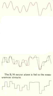 It is this waveform that is considered to be the "original signal" to be copied by the digital recording process. Now, the circuits that are used to measure the samples need a little time to do so. Therefore, a device that is called a sample-and-hold circuit (S/H) "freezes" the audio voltage at the instant of sampling, holds it there while the measurement is made, and at the next sampling time freezes the audio signal again. Here is the S/H output over laid on the filtered original signal: The S/H output alone is fed to the measurement circuits: (see above diag.) If every step so far has been done correctly (no too-high frequencies, samples regularly spaced, audio signal precisely frozen), in theory no degradation of the original signal has occurred; it has merely been transformed into something suitable for electronic measurement. But the measurement process, even if it is done perfectly, does introduce some errors, and we should look a little closer to see what they are. Quantization The second fundamental principle of digital recording, "quantization," refers to the generation of a number during the measurement process. To quantize the table-edge waveform, at each sampling point you'd use a ruler to measure the distance in inches be tween the table edge and a reference line drawn down the center of the table. During this process, you must round off the measurement to the nearest marking on the ruler. If the ruler has marks spaced only every 1/2 inch, then the set of measurements will be to the nearest 1/2 inch. Obviously, if the table edge has bumps and dips that are only 1/8-inch high, 1/2-inch resolution is not sufficient to "record" the table accurately. ![]() ![]() With an audio signal, what is quantized is the voltage of the audio signal at the sampling instant (specifically, the voltage frozen at the sampling point by the S/H). A circuit called an analog-to-digital converter (ADC) compares the audio voltage with the electronic equivalent of a ruler and generates the electronic code number which most closely represents the input voltage. On playback, a digital-audio system will retrieve the numbers from the recording medium (digital tape or disc) and feed them into another specialized circuit called a digital-to-analog converter (D/A or DAC). This circuit generates an output voltage corresponding to the code numbers using the same voltage/number relationship as the original ADC. The ruler-marking problem we encountered above with the table also exists in dig ital audio. How fine must the quantization steps (voltage levels) be before high fidelity can be achieved? If the audio signal had meaningful undulations of I millivolt (one thousandth of a volt) and the ADC could only distinguish changes of I volt, there'd be a problem. However, unlike the case of the sampling-rate problem (simply sample at a rate twice that of the highest frequency), there is no easy answer here. The difference between the recorded number and the actual value you would get if the ruler had infinitely finely spaced markings is a signal error. In the case of the table, your friend would end up with an edge which closely, but not exactly, matched the original. The audio equivalents of such differences between input and out put are noise and distortion. This quantizing noise can be minimized by using more closely spaced markings on your electronic "ruler," but there are ramifications to this: First, increasing the resolution (the fineness of the changes the system can distinguish) also increases the length of the number generated (think of 3 inches as opposed to, say, 3.025 inches), making compact storage of the numbers more difficult. Second, with digital audio it becomes increasingly difficult for electronic reasons to make extremely fine markings on the "ruler" so that ac curacy does not suffer. Nonetheless, that is what we must do, for only an increase in the resolution will decrease the amount of noise and distortion generated by the record/playback system in digital audio. The resolution of a digital-audio system is measured in "bits," each bit being a power of 2. Thus a sixteen-bit digital-audio sys tem divides the voltage range being used into 216 (65,536) discrete levels, each one identified by a sixteen-place binary number ("binary" meaning made up only of 0’s and 1’s). The theoretically best signal-to-noise ratio obtainable with such a system is 98.08 dB, each bit adding about 6 dB to a digital-audio system's noise performance (equivalent to a doubling of the number of mark lower performance level is obtained in practice owing to inaccuracies in the ADC/DAC system and noise added by the S/H and filter stages. Signal Reconstruction We've been mostly concerned with re cording up till now. With playback, however, additional problems arise. A major one concerns the numerical data as it comes off the digital tape or disc; another has to do with the DAC-regenerated signal. Numbers do not come off a digital tape or disc at a steady rate, yet the accuracy of the digital process depends on the regularity of the spacing of the samples in both recording and playback. In the table analogy, it's as if the cabinetmaker had someone reading back the list of measurements to him some what haltingly and not exactly when he needs them, with the result that the plotted horizontal spacings come out unevenly. Such deviations from regularity would be perceived in audio either as noise, distortion, or wow and flutter. Eliminating this problem is easy if a kind of "scratch pad" is used on which a backlog of the numbers is stored. Numbers can be removed from the scratch pad at a regular rate regardless of how irregularly they are entered on it. As long as the pad does not become full or empty, wow, flutter, and other timing-related distortions can be eliminated. And this is just what is done with a digital-audio system; the scratch pad is made of electronic digital memory circuits (such as those used in computers), and the