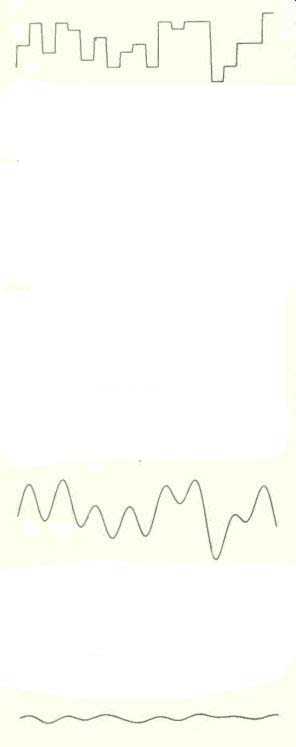Digital Audio: A Primer (Feb. 1981) By David Ranada PRICIER Now that a home digital-audio play back system is on its way, it's high time that market-wise audiophiles learned the basics of digital audio so they won't be confused or bamboozled by advertising copy or product brochures. The fundamental principles of digital sound are really quite simple-easier to understand, in fact, than other, more familiar aspects of audio, such as, for example, stereo FM. This short primer is meant to give the reader a confident feel for those principles and will therefore ignore the frills-such digital-audio esoterica as DAC monotonicity, sin X/X compensation, phase-compensated filters, floating-point encoding, and dither signals. DIGITAL audio can perhaps best be explained through an analogy. Suppose a cabinetmaker friend of yours wants to make a duplicate of an ornate table you own. You could lend him the original table (corresponding to live music) or perhaps give him a scale drawing (an analog recording) from which he could make his copy. The first method might be both risky and impractical; the second would require highly accomplished drawing skills. A third method would be to send him a "digital recording"--a sheet of paper on which is written a list of detailed measurements of the original table. As long as he knows exactly which measurement applies to which part of the table, the degree of fidelity with which the table can be reproduced depends solely on (1) the accuracy of the measurements you send and (2) how well your friend can duplicate them using his own tools. Likewise, the fidelity of a digital-audio system depends only on (1) the accuracy and precision of the measurements made on the original audio waveform and (2) the ability of the playback equipment to turn those numbers back into a varying audio voltage. The analogy points up another important aspect of the digital process: its immunity from error. If your cabinetmaker friend lives two thousand miles away, the chances that the original table will arrive undamaged (distorted) are low. Distortion is also difficult to avoid in even the most carefully drawn scale representation. And even if a perfect scale drawing were to arrive intact at its destination, it still might have been folded, spindled, or otherwise mutilated. If irreparable damage has been sustained by the drawing (read "record grooves"), there goes any chance of exact duplication. But digital recording is quite immune to these types of signal degradation: as long as the measurement numbers on the list can be read at all, a duplicate table can be made. Your friend can even "regenerate" a dam aged copy of the list by recopying it by hand. And you could yourself make the list even more immune to damage by sending several copies of it on the same sheet of paper. In this way, even if much of the sheet were to be destroyed there would be enough surviving "redundant" data to ensure proper completion of the table. Digital audio similarly has a resistance to error. A digital-audio recording contains not only the original waveform measurements but also error-detection and-correction data. These data enable the digital playback system to tell whether the original measurements have been damaged and how to correct the errors using redundant data placed in the recording. So far, so good-but you're right: Beethoven's Fifth is not like a table (although I've heard some pretty wooden performances of it). How are measurements made on an audio signal so that one can safely say that it is recorded with fidelity? And how are those measurements translated back into an audio signal so that it is (almost) indistinguishable from the original? The answers are: (1) through the very high rate of the conversion of the audio signal to and from numerical measurements, and (2) through the accuracy and precision of the measurements themselves. In other words, digital audio operates very fast and very carefully. These two aspects of the process relate to the two most fundamental operations in digital audio: sampling and quantization. To discuss these we'll have to com plicate our analogy and dive just a bit deeper into digital theory. Sampling Let us say that the table to be copied has a rather ornate top, the edge of which consists of a compound "pie-crust" curve. And if you look closely at the table edge, you'll see various narrow undulations, some put there by the original maker's tools, others produced by wood grain, cuts, or scratches. Greatly magnified, a section of it might look like this: ![]() This same curve might also be an audio waveform as displayed on an oscilloscope screen. In this interpretation, time runs from left to right and the height of the curve represents the audio voltage at any instant. High frequencies (the narrow peaks) are undulations that occupy short time periods; low frequencies take longer and appear wider. If we want someone to reproduce this tracing, what kind of measurements should be made and sent? One simple measurement method is called sampling. To sample the table edge you would make a series of regularly spaced horizontal measurements (samples) of the distance of the table edge from some baseline (such as a line down the center of the table). Your friend would then take your measurements, plot them out on a piece of wood using the exact same horizontal spacing as you did, and cut along the resulting plot. In audio, you'd measure the audio voltage at regular intervals. On play back, a circuit would generate the same voltages, with the same spacing in time, as are specified by the list of measurements. What is the minimum spacing between measurements that will make it possible to capture all the fine detail in the original table edge (or waveform)? You can get an intuitive feel for the answer by considering the following. If the narrowest undulation of the table edge is V64-inch wide and measurements were taken every 1/4 inch, you'd miss all the fine details between th