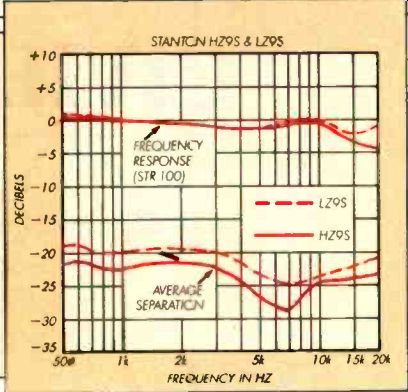 ![]() by Julian Hirsch, Hirsch-Houck Laboratories FEATURES Moving-magnet construction with samarium-cobalt magnet (for low mass) and symmetrical coils (for greater separation) User-replaceable stylus assembly Tubular aluminum cantilever coated with sapphire for stiffness and low moving moss Cantilever electrically grounded through its stabilizing tie wire to drain off electrostatic charges Stereohedron II line-contact stylus Recommended tracking force: 0.75 to 1.5 grams Weight: HZ9S, 4 grams; LZ9S, 3.8 grams Recommended load impedance: HZ9S, 47,000 ohms, 275 picofarads; LZ9S, greater than 100 ohms, capacitance not critical THE Epoch II series of moving-magnet phono cartridges from Stanton Magnetics combines several new design concepts with styling strikingly different from the company's previous cartridges. The Epoch II cartridges have low-mass bodies that are ideally suited to today's light tone arms. Two versions of the cartridge body are available: a conventional "high-impedance" model, designed to drive the 47,000-ohm moving-magnet phono input of a preamplifier, integrated amplifier, or receiver, and a "low-impedance" version suitable for use with a typical moving-coil-cartridge input termination of 100 ohms or more. In combination with three different replaceable (and interchangeable) stylus assemblies, these options provide the Epoch II line with six models in all, covering a broad price range and suitable for use with a variety of music systems. This mix-and-match approach also makes it possible to upgrade any of the lower-priced models simply by installing the appropriate replacement stylus. The stylus used in the higher-priced Epoch II cartridges is a diamond with an improved Stereohedron II extended-line-contact shape. Its radii are 0.2 and 3 mils, and it is said to touch the groove wall over 80 percent of the groove's nominal depth. One of the lower-priced cartridges uses a Stereohedron I tip with 0.3- and 2.8-mils radii, and the least-expensive Epoch II model is fitted with a 0.2 x 0.7-mil elliptical stylus. Earlier Stanton cartridges have also offered low-impedance, low-output coils that make them "moving-coil equivalents." As the manufacturer points out, this approach provides the acknowledged advantages of a moving-coil design (principally its independence of loading interactions and extended high-frequency response thanks to the elimination of the low-pass filter formed by the coil inductance and load capacitance) without the drawbacks of a moving-coil's typical fragility and (usually) non-replaceable stylus. Since the Epoch II LZ models have the low output voltage of a typical moving-coil cartridge, they are completely compatible with any MC preamplifier input or can be used with a head amplifier or trans former. For this report, we tested the top-of-the-line Epoch II cartridge, the HZ9S, and we also made limited tests of the LZ9S low-impedance model, which uses the same stylus as the HZ9S. Each of these cartridges is priced at $250, with re placement styli available for $90. The least-expensive Epoch II cartridge, the HZ6E, is only $95, and its stylus is priced at $40. Stanton Magnetics, Dept. SR, Terminal Dr., Plainview, N.Y. 11803. =========== ![]() HIRSCH-HOUCK LAB MEASUREMENTS Frequency response (with CBS STR 100 test record): HZ9S, 40 to 20,000 Hz +0.5,-3 dB referred to 1,000-Hz level; LZ9S, +0.5,-2 dB Channel separation: HZ9S, 22 dB at 1,000 Hz, 24 dB at 10,000 Hz; LZ9S, 20 dB at 1,000 Hz, 23 dB of 10,000 Hz Output voltage la: 3.54-cm/s groove velocity, 1,000 Hz): HZ9S, 3.4 millivolts; LZ9S, 0.1.5 mV Channel imbalance: HZ9S, 0.6 dB; LZ9S, 1.28 dB Vertical stylus angle: 22 degrees (both models) Optimum load: HZ9S, 47,000 ohms in parallel with 360 picofarads; LZ9S, greater than 100 ohms, capacitance not critical Tracking ability (at 300 Hz with German HiFi *2 test disc): 80 micrometers at 0.75 gram, 100 gm at 1 gram IM distortion: less than 3% with groove velocity between 7 and 22.5 cm/s; 5% at 27 cm/s Tone-burst distortion: less than 1% with groove velocity between 15 and 30 cm/s =================== Lab Tests The two cartridge bodies were in stalled in plug-in shells for a low-mass tone arm that is compatible with the low mass of the Epoch II cartridges. The compliant styli resonated at 7 to 8 Hz in this arm, which caused no problems in tracking warped records, but it is obvious that for best results the Epoch II series cartridges should not be in stalled in massive tonearms. We made complete tests of the HZ9S, and we measured the output, frequency response, and channel separation of the LZ9S by installing the stylus from the HZ9S in the other body. This approach allowed us to assess differences resulting from the LZ's low coil impedance with out having to allow for the effects of normal stylus variations. For both measurements and listening tests with the low-impedance body, we used a high-quality MC transformer whose response is very flat and extends well beyond the range of the cartridge and test records. We used a 1-gram force for most of our tests, and frequency-response measurements with different load capacitances showed that this was not a critical factor, although higher values made a slight improvement. We used 360 picofarads. The frequency response of the HZ9S with the CBS STR 100 test record had a slight, well-damped peak at 10,000 Hz, dropping off slightly at higher frequencies. It varied over a ± 2-dB range from 40 to 20,000 Hz. The two channels had virtually identical response and channel-separation characteristics. Substituting the LZ9S body, we found a similar response up to 10,000 Hz and beyond, but the output remained stronger above that frequency and did not appear to be rolling off above our 20,000-Hz measurement limit. The tracking ability of both models was outstanding. At 0.75 gram they tracked the 30-cm/s tones of the Fairchild 101 test record, the high-level 32-Hz tones of the Cook 60 record, and the 80-micrometer level of the German HiFi