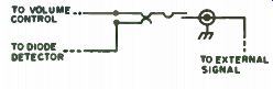 ... may' create stray light problems. For general use, the indicated values work very well. There is nothing magic about the voltages shown for the op amp-six volts or so would work as well. Note that there is no need to use shielded cable for the cell leads. As with most projects, just about the time you get the last screw in place, there is that little voice whispering in your ear, saying, "I wonder what would happen if . . . 7" Well, this project is no exception. Figure 2-13 shows what happens when you listen to little voices. The AC power supply has disappeared, replaced by two C cells in series. The op amp has vanished because a more sensitive (50 microamp) meter has been used. The diode in series with the meter is used to provide a hold-off threshold effect so a small steady meter reading is cancelled. Either unit does about the same job of providing your bench with a photocell dimension that will find many uses. El Cheapo Signal Tracer Every hobbyist needs a cheap signal tracer and audio amplifier at some time or another. If you try connecting a 117v AC to the audio output jack of a six meter receiver, you'll find you need one, too. Keep in mind that if you would try such a stunt, you'll have some painful memories. One foolish experimenter tried this and when the smoke cleared, the two audio output transistors and their transformer were in such a mess that they were eligible for foreign aid (it's a Japanese receiver). Wanting to get back on the air fast, the hobbyist rummaged through the junk box until he found a cheap transistor radio. With this, a resistor, a capacitor and 10 minutes of work, he was back in business. Best of all, the transistor radio was still usable once the six meter receiver was fixed. The modification to the pocket radio involves four steps. • First, find the earphone jack and the earpiece and cord that plug into it. Inside, the jack will have three wires connected to it: a ground, a lead to the speaker and another one trailing off to the innards of the radio somewhere. This last wire actually goes to the secondary winding of the audio output transformer (Fig. 2-14). Leave the ground wire undisturbed. Unsolder the wire to the speaker and the one to the innards, both at the jack, and note which went where. Solder the ends of these two together and tape them. Now the radio is permanently connected to its built-in speaker. • The second step involves finding the point where the diode detector connects to the volume control. This can be found by tracing back from the center pin of the volume control along the foil until you find the glass diode. Unsolder the end of this volume control, but leave the other end connected. Solder a piece of insulated hookup wire to the free end of the diode. The other end of this wire is soldered to the pin on the earphone jack that was formerly connected to the...