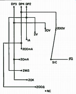 three digits and drive the LCD. The half digit and polarity are de-multiplexed with the MC14013B dual D flip-flop. Since the LCD requires an AC signal across it, the low frequency square wave drive for the LCD is derived from the MC14024 binary counter, which divides the digit select output from the AID. Although this is a convenient way to obtain the required square wave, it is not necessary to take it from here. The frequency should be about 4 kHz, as this will provide for the best contrast on the display unit. This low frequency square wave is connected to the backplane of the LCD and to the individual segments through the combination of the output circuitry of the 543B and the exclusive OR gates at the outputs of the 013B. All of the decimal points are tied to PH through a 1 megohm resistor, and, to display a particular DP, it is switched to PH. The overrange pin ( 15) goes low when Vx exceeds Vref. It is normally high. The 543Bs require a ground on pins 7 (blanking) to display. In our case, the ground is actually the most negative supply (to get the maximum amount of voltage swing on the output). This normally high OR pin on the 433 is tied to a PNP transistor, which is tied between - V and +V. In its normal state, the transistor is not conducting, thus allowing the - V to be on the collector. When the input goes low, indicating an overrange condition, the transistor conducts and places a high (+) on the blanking input of the 543s, thus blanking them. Note that the first digit has no provision for blanking. You can wire-wrap the LCD socket and the 543Bs. One reason for this is because the pins of the socket of the LCD are very close together. Calibration. The first thing to do in the way of calibration is to set the reference voltage. Note on the schematic that it can be set up for 2 volts or 200 mV full scale (Figs. 7-13, 7-14 and 7-15). It should be set for 2 volts due to possible noise problems, but, even with the 2 volt scale, it can be read to 0.001 volt. Be sure to be accurate with this reference voltage, as the accuracy of the entire instrument depends upon it. A short word should be said about the quality of components used in the frequency determining resistors and capacitors, especially in the capacitors. These 0.1 uF caps should be of the high quality polyester or mylar. Using cheap caps here can lead to inaccurate readings. If you used precision resistors for the voltage divider network, the next step is to calibrate the ohms scales against known resistance values. Just tweak the control until the correct value is displayed. If you used pots in place of the precision resistors (in the interest of saving money), you must set these up. The way to do this is to get a calibrated voltage source. Set the voltmeter to the 200 volt range, and adjust the 100k pot for a correct reading on the meter with about 90 to 120 volts applied to the input. Watch out, as the 433 doesn't really like all that voltage, especially if it is applied directly to the 2v scale. It might blank out forever! After you have calibrated the 200 volt scale, don't touch that pot again. Apply about 16 volts to the input and adjust the 900k pot for a correct reading. Next, do the same thing for the 2 volt scale, using the appropriate voltages. After this, you will probably have to touch each of the pots up, as each will interact with the other. With a little time, you can save yourself a little money, and probably have a more accurate meter than if you were to buy precision resistors! There are a few things which you should be on guard for and those are in the area of the AC detector circuit. Since this is essentially an amplifier/ detector circuit, anything that is placed on the input will show up as a DC potential on the output. The Ac detector circuit takes more time to refine than does the rest of the DVOM. On the switch assembly, don't run the PH and PH lines with unshielded wire because the input is a very high impedance, and therefore doesn't take very much to drive it. So, a little shielding and careful placement should take care of it.