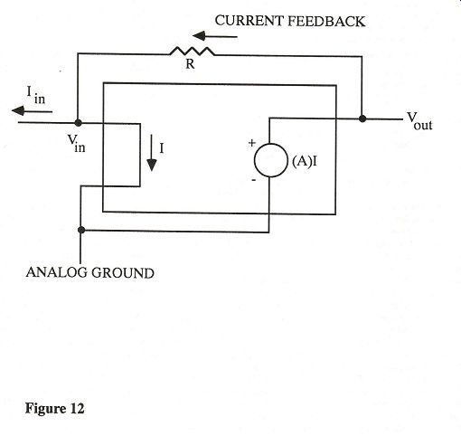 ---- (Blank space signifies unavailable data.) Table 4: Comparison of ICs Suitable for Use in CD Players; TRANSIMPEDANCE (CURRENT FEEDBACK) --------------- Designing the Analog Stage Analog stage design in a CD player is similar to preamplifier stage design. The functional first section of the analog stage, namely the current-to-voltage converter, is the most difficult to design. The current-to voltage converter takes the current output of the DAC as its input and generates a voltage signal at its output with a level linearly proportional to the current entering the stage. Design problems arise in this stage because the DAC output is not a bandlimited analog signal, but rather a set of current steps changing at the word rate of the DAC. The stage must respond to the step change in current with a step change in voltage. The voltage change must occur within a small percentage of the conversion period, and the voltage output must settle to the new signal within an accuracy of 0.0015% (for 16-bit accuracy) of the output expected from an ideal current-to-voltage converter. To achieve this level of performance, the amplifier must have a high slew rate, a wide bandwidth, linear operation with "large-signal" inputs, and large stability margins. As an example of the requirements in a current-to-voltage converter, consider the required slew rate for an amplifier to slew completely from the maxi mum positive signal to the maximum negative signal (a swing of 5.6 V typically) in one-tenth the conversion period of the DAC. For an 8x interpolating system this is 285 ns. A slew rate of at least 20 V/us is required. To settle within 0.0015% of a signal's final value, a circuit with a single-order lowpass response must settle in 11 time constants. This requires the current-to voltage converter to have a bandwidth 11 times the word rate. For an 8x interpolating system, this requires the current-to-voltage converter to have a bandwidth greater than 4 MHz. To ease these requirements some what, a first-order filter function, which forms part of the reconstruction filter, can also be incorporated in the current-to voltage converter. An additional operating constraint requires that the input of the cur rent-to-voltage converter be held at its ground potential so that the DAC is terminated into a virtual short. If the output of the DAC is not held at a constant ground potential, the linearity of the converter is degraded. The current-to-voltage converter should also show good rejection of high frequency noise, which may be present on the power supply rails. A current-to-voltage converter stage should have a minimum power supply rejection ratio of 60 dB at 100 kHz. A current-to-voltage converter can be crafted from a voltage amplifier [Jung 1986], though the performance criteria are more easily met using a current feedback (transimpedance) amplifier [Evans 1985], [Goodenough 1987]. This topology offers higher slew rates, greater bandwidth, and lower settling times than is possible with an op amp topology. This circuit is more easily understood than the op amp circuit. It, therefore, will be used as a point of reference in explaining the operation of a cur rent-to-voltage converter stage. The trans-impedance amplifier (Figure 12) works by placing a low impedance across the input to act as a short. This forces the input voltage V_in to be held at ground potential as required for proper D/A performance. Feedback, in the form of current, is applied to the input through R. Current from the DAC and cur rent from the feedback branch enter the short-circuit input of the transimpedance amplifier. The gain stage, whose transfer function is A (with units in ohms), senses the current in the short and transforms it into a voltage. If A is large enough, the feedback loop will be satisfied when the current feed back is equal to the input current. Since the input node is held at ground potential, the voltage output of the stage is the voltage across the resistor. Hence, Vout = ink This is the ideal equation for a volt age-to-current converter with conversion impedance R. If the designer has chosen to reduce the amount of negative feedback in an audio amplifier, the transimpedance amplifier has an additional advantage. Cordell argues that an amplifier can be designed with high global feedback rates and avoid exhibiting dynamic distortion [Cordell 1980]. D. C. Wadsworth of Phototronics contends that this argument is valid only if the input signal is bandlimited to the audio band. The input to a current-to-voltage converter has a bandwidth well into the megahertz region, thereby violating this condition. A voltage amplifier, when used in a current-to-voltage converter, requires high rates of feedback to reduce the input impedance of the amplifier [Millman 1979] to a point at which the DAC output will not move significantly from ground potential. Only transimpedance amplifiers and current amplifiers-see [Didden 1989] for an elegant treatment of a current amplifier as part of an I/V converter stage-are feasible if a low rate of negative feedback is to be used around an amplifier which simultaneously provides a low input impedance. The principal disadvantage of current-mode amplifiers is that they are not as easy to use as op amps [Goodenough 1990]. Increased noise levels are also a potential problem with current-mode amplifiers. Accuphase, Precision Audio, Barclay Audio (a company no longer producing complete CD players), and M. S. Brasfield adopt transimpedance amplifiers in their respective current-to-voltage conversion stages. Interestingly, the latter three are small American companies with degreed electrical engineers heading the design department. All three companies developed the solution independently. Small CD modifiers who do not have an engineering back ground continue to use op amps in their de signs. Unfortunately, no matter how many different types of op amps they try, they will never overcome the fundamental de sign pr