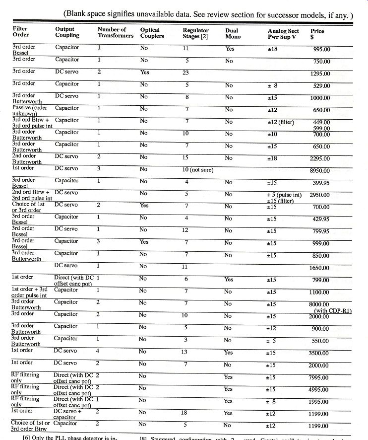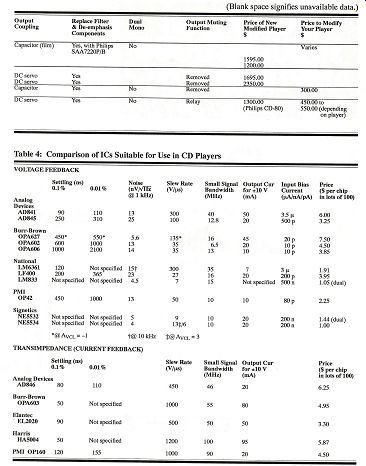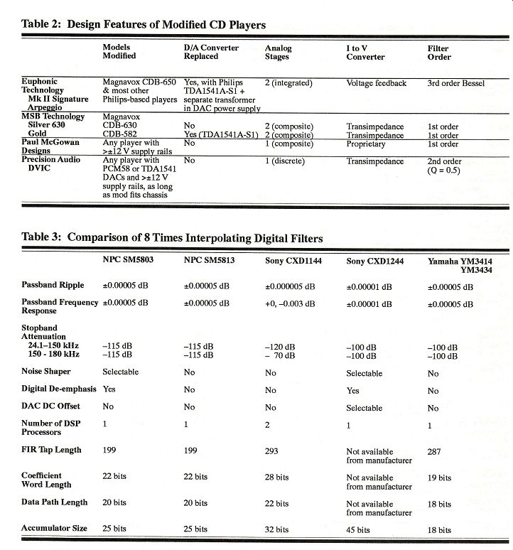---------- Table 2: Design Features of Modified CD Players ----------- Table 3: Comparison of 8 Times Interpolating Digital Filters References 7th International Conference: Audio in Digital Times (May 1989): 87-96. Wadsworth, D. C. "A Professional Audio Integrated Circuit." 87th Convention of the AES, New York, NY (18-21 13.10 (October 1990): 59. October 1989): Preprint 2831. Willenswaard, P. van. "Industry Update: The Netherlands." Stereophile