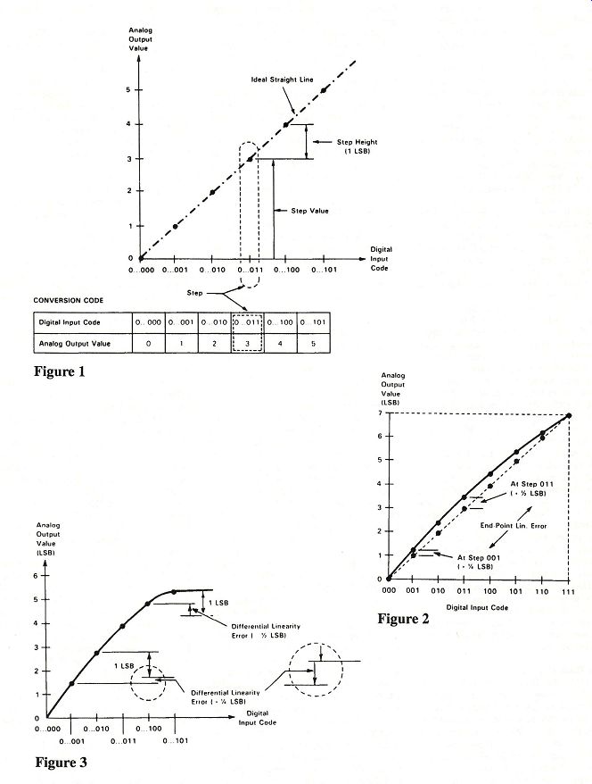 ---- Figure 6a Figure 6b, Figure 7 ... nor at exactly matched levels, my impression was that the sound of the new units is significantly more open and less "electronic." I attribute this difference to the elimination of the sample-and-hold stage. One potential problem in removing the sample-and-hold circuit is the feed through of digital clock signals to the analog output of the converter. Digital signals typically have a peak-to-peak amplitude of 5 V. These signals enter the DAC to encode the next digital word into the DAC and they determine when the conversion process begins. Normally, these signals would not be running during the period that the output of the DAC is sampled. When the DAC's output is continuously connected to the input of the analog circuit, a change in a digital signal's value may slightly affect the analog output. This is probably a third order effect, though some designers of high-end CD players minimize it by con trolling the rate of rise and fall of the dig ital signals connected to the DAC. They also align the transition time of all the digital signals that enter the DAC. Denon, JVC, Technics, and Yamaha add external circuitry to increase the resolution of digital-to-analog conversion two bits beyond the resolution of the DACs they are using. High glitch energy is one problem with these systems. Consequently, a sample-and-hold circuit is required. The Yamaha CDX-1120 eliminates the sample-and-hold with a new low-glitch implementation of their floating-bit DAC. In addition, the problem of matching the components added to the DACs in these systems tends to limit the accuracy of these CD players. These systems, I believe, are incapable of matching the accuracy of the best available monolithic DACs. I would greatly hesitate to purchase a CD player with external circuitry for the purpose of enhancing DAC resolution. Denon (in the DAP-2500 digital audio preamplifier), Kinergetics (in the KCD-40), and Yamaha (in the CDX 1120) use a novel approach for reducing the nonlinearity of a DAC, in which a pair of DACs are wired in a push-pull configuration. One DAC in the pair receives digital information which has been modified so that the polarity of the signal entering the DAC will be inverted. The analog current-to-voltage converter takes the difference between the respective current outputs of the two DACs. Matched even-order nonlinearities that appear at the output of the two DACs are then cancelled. This approach is success fully adopted in analog circuits characterized by closely matched even-order nonlinearities. Most DAC nonlinearities, however, are caused by random processes, and they do not match between dies. Thus, only the small systematic nonlinearities will be canceled. This approach is very expensive because each channel is serviced by a pair of DACs. A single, highly linear DAC will outperform two less linear DACs wired in a push-pull configuration. Hence, the push-pull topology should be used only with the highest-grade DACs available. It is not possible to fabricate the internal circuit components in a DAC to match closely enough to achieve 16-bit accuracy. Burr-Brown and Analog De vices adopt a technique called laser trimming. A laser adjusts the value of the critical resistors on the chip during the initial testing of the silicon wafer. After this test, the wafer is split into individual chips, which are then placed in plastic packages. The packaging of a die can effect its performance through exposure to mechanical stress. Final packaged parts are retested. Not all of these parts per form equally. Devices with the best THD performance are separated. These DACs are then sold at different price points, de pending on their respective THD performances. DACs are generally classified into one of three grades. Suffixes are attached to the part number to indicate its quality. Ranking the DACs A current ranking of DAC accuracy, in ascending order of improved performance, is as follows. Category 1: AD1856 AD1860 PCM56P PCM61P Category 2: AD1856-j AD1860-J PCMS56P-j PCM61P-j Category 3: PCMS58P Category 4: AD1856-K AD1860-K PCM56P-K Category 5: PCMS58P-J Category 6: PCM61P-K Category 7: PCM58P-K The PCMS8P and PCM61P are guaranteed to meet their distortion performance specifications without a de-glitcher. In my opinion, only the DACs in the last four categories should be used in a mid-priced or high-end CD player. The PCM56P-K and AD1856-K, albeit 16-bit DACs, offer better linearity than some of the 18-bit resolution devices. These 16-bit DACs are cheaper than the less accurate 18-bit models, though marketing considerations curtail their use. One of the leading DAC designers calls the extra two bits "marketing bits." For a CD player with a four-figure price tag, I would consider only a PCM58P-K or a PCM61P-K. Engineers at Madrigal, The ta, and CAL have selected the PCM61P K device for their machine, claiming that it offers better sonic performance. Theta has performed measurements which they claim show the PCM61P-K to be more linear than the PCMS58P-K; however, they are now using the AD1860-K. Some manufacturers use lower selection grades of DACs, asserting that the selection pro cess is done in-house. This is hardly convincing, since the binning process ensures that the lowest-grade DACs will have the poorest performance; all DACs with superior performance have already been removed. (An exception to this rule occurs if the number of top-grade DACs produced exceeds the demand for them. When this happens, some of the top grade DACs are marked with a lower grade). The Burr-Brown PCM1700P and Analog Devices AD1864 contain two DACs on one silicon chip. This allows the use of a single chip for stereo applications. The Analog Devices part comes in blank and J grades, and its performance is identical to that of other Analog Devices parts of the same grade. The PCM1700P yields performance that is slightly poorer relative to the PCM58P for a given part grade. (The comparisons