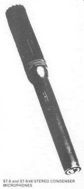 above: ST-8 and ST-8/48 STEREO CONDENSER MICROPHONES It lacks the versatility and the ac power supply of the larger microphone. So far, I have used it only for speech (radio theater and lectures), though that can be a stringent test for a microphone. It has a magnificently natural, easy, un colored sound. This micro phone needs to be powered from a little battery box or from mixer-supplied power, which makes it somewhat less convenient than the internal-battery powered electrets coming into wide use. Now the bad news. The trouble with both of these microphones is that they are enormously expensive. The ST-8 costs $2,300 in the USA, and the ST-82 $1,800. Their competition is not significantly cheaper. These prices put such tools almost completely outside the reach of the serious amateur, who cannot take an investment tax credit on the purchase, or work out some other scam to relieve the pain. I don't wish to deny PML or Mr. Cara a just return on their efforts or risks, and I think I understand why these microphones need to be so expensive, but I wonder why so far no manufacturer has ventured to try the market for a single-point stereo microphone of high quality costing, say, $300 US retail. This is particularly puzzling in view of the existence of several single-point stereo mikes costing less than $100 from JVC, Radio Shack, Sony and Technics. Compared to the big guns, these are, in a sense, toys; they suffer from the usual inadequacies of cheap microphones: irregular and frequency-varying polar pattern, high hiss level from the internal preamp, and insufficiently high overload level. Yet I have used them happily for interviews, collecting sound effects, informal recording of small musical ensembles. But with single microphones, I know that when I encounter the limitations of a particular model, there is another model for twenty, fifty, a hundred dollars more that might overcome them. With single microphones there are models at every $10 increment from under $10 to nearly $1,000. Nothing like that for single point stereo pairs. Good project here for adventurous amateurs. How about a build-your-own double-figure eight or double-cardioid stereo microphones? Dynamic or con denser, take your choice. It would be easiest, of course, to begin with manufactured elements. Who will be the first to risk disassembling and recombining two perfectly fine microphones? : Information on the complete line of PML microphones, including dynamics as well as condensers, is available from: Cara International, Ltd. 4145 Via Marina, Suite 120, Marina Del Ray, CA 90291. ------------------------ Also see: Showcase--Leach and Jung turned out under a craftsman's hand; Editorials The Williamson 40/40, Power Amplifier--Return of an improved favorite after a decade