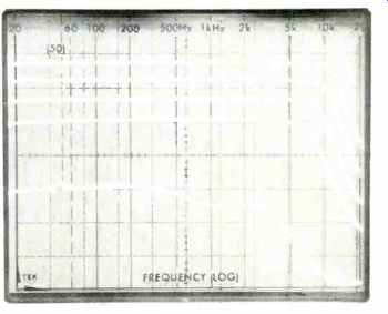Fig. 3-Varying sensitivity control of the 1201A with the high level sweep frequencies applied resulted in the upper group of response curves. With the low level sweep, lower response curves were obtained with the "Min" button depressed.